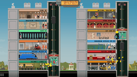 Press up and down, elevator goes brrr! Deliver customers to the correct floor and max your score. Serve many customers including but not limited to surfers, astronauts, cars, ghosts, cheerleaders, horses, and cheerleader horses. 1-2 players! 50 different floors! HORSE MODE included!