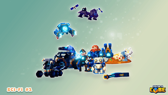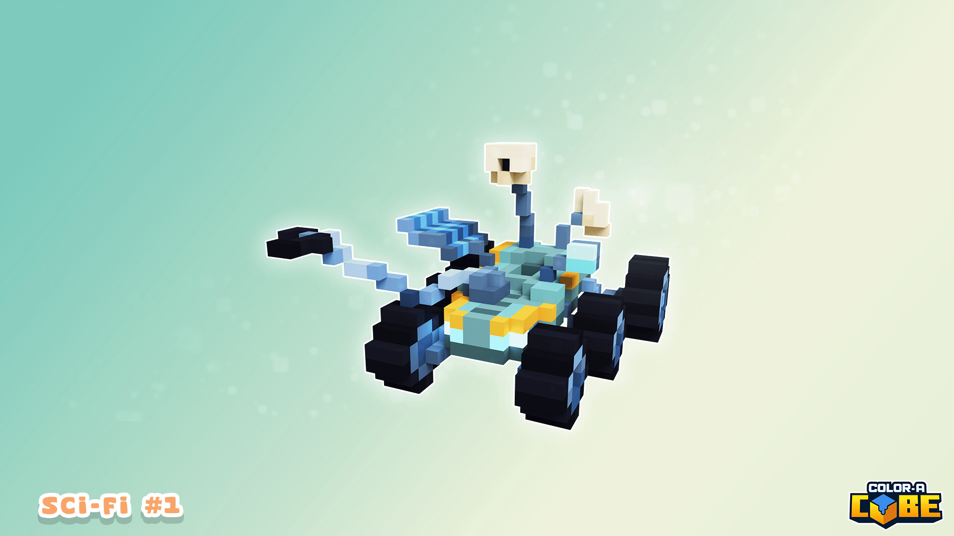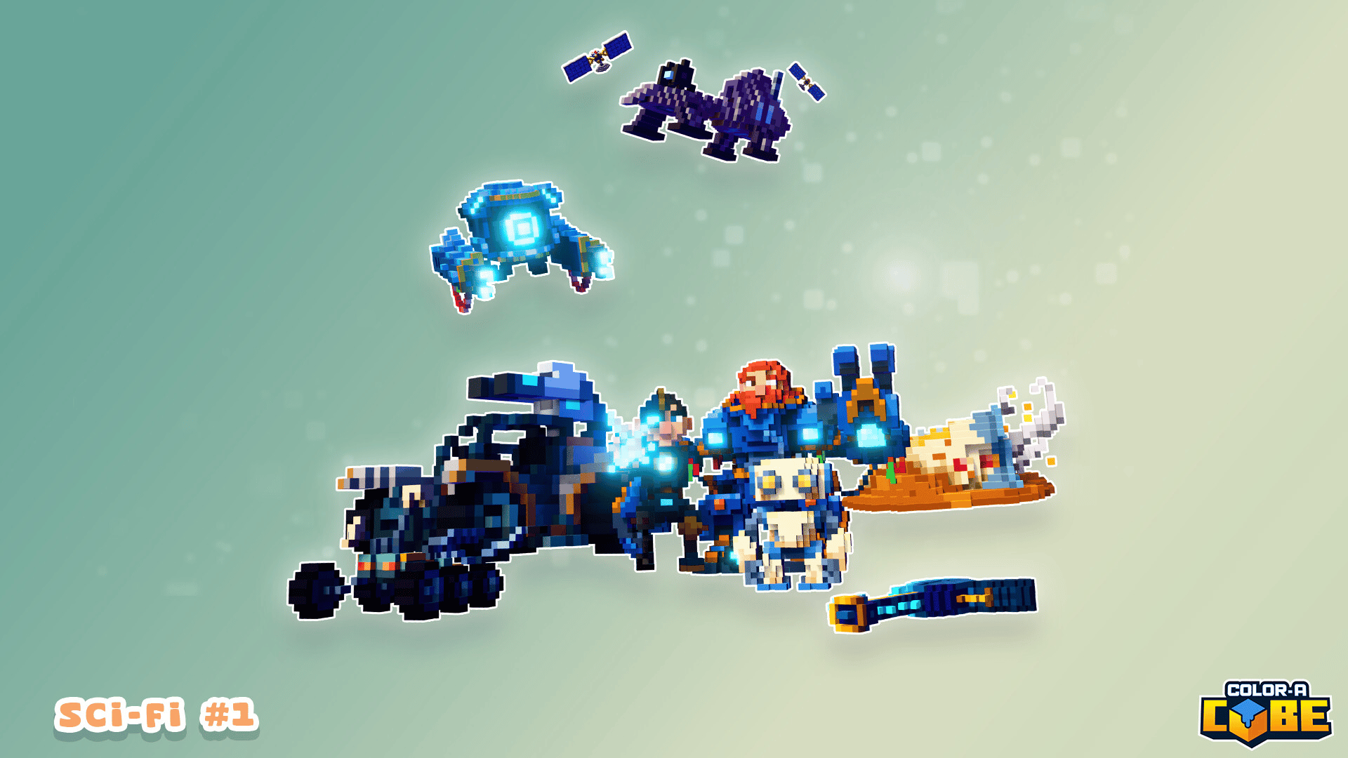 Bring the future to life in Color A Cube with the Sci-Fi Pack! Paint 10 high-tech models: Drone, Cyborg, Mech, VR2GO, Scout Bot, High Tech Gun, Spaceport, Crash Site, Satellite, and B.U.G.G.Y. Perfect for fans of sci-fi, tech, and voxel creativity!