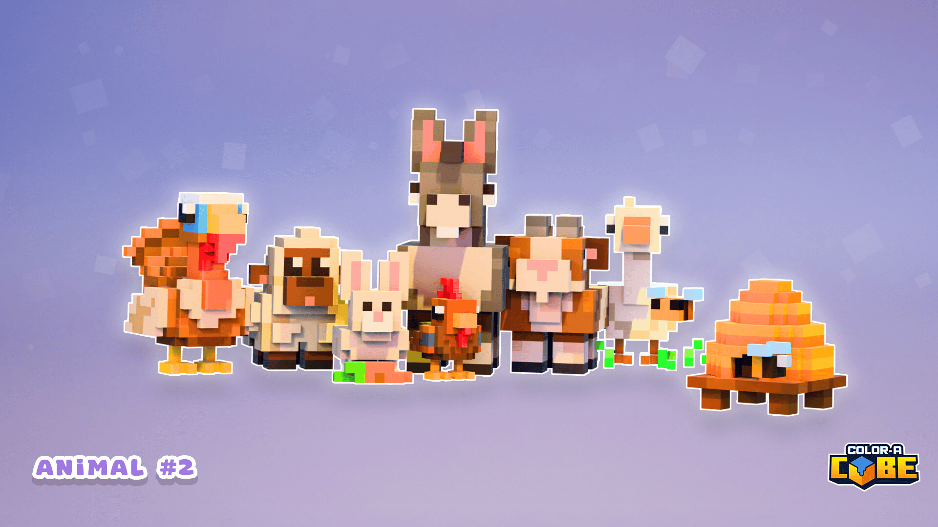 Add even more charm to Color A Cube with Animals Pack #2! Paint 10 lovable voxel models: Bees, Bunny, Goat, Goose, Rooster, Sheep, Turkey, Donkey, Ram, and Ducks. Each is full of personality! Includes 25 bonus Vox—perfect for animal lovers and creative minds!