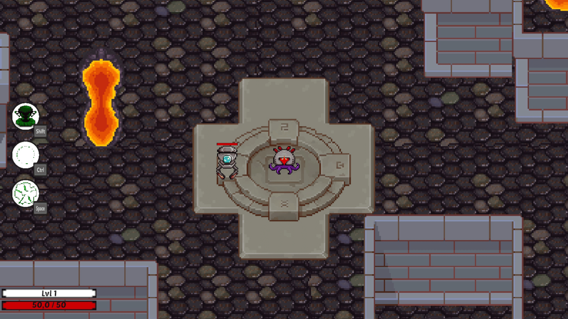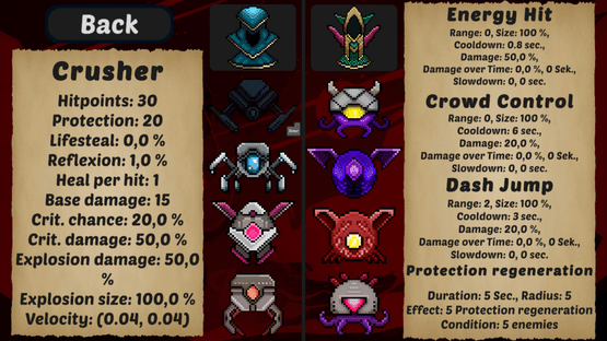 Creator’s Fall is a pixel roguelike with various classes, where you can choose between different paths. The goal is to reach and defeat the final boss at the end of the path. Levels are dynamically generated and feature different biomes. You can choose an upgrade after each level up.