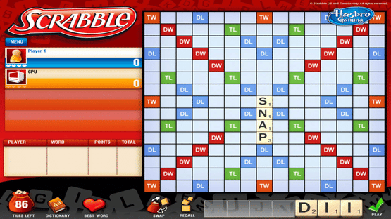 The fantastically fun crossword game is now specially designed for your PC or Mac. Build words using letter tiles and enjoy quick, easy-to-learn controls and fantastic features. Play solo, compete with the computer, or challenge up to three friends in a Hot Seat challenge. Choose from a variety of game styles. Adjust the difficulty level when you play the computer. Track your best words and top scores, and chart your progress to become the best SCRABBLE player you can be.Game Features Enjoy all the fun of SCRABBLE right on your PC or Mac Play solo, compete against the computer, or challenge friends to Hot Seat action Adjust difficulty levels and game styles to suit your skills View your stats, including best words, top scores and more Learn to play quickly and easily with helpful game tips