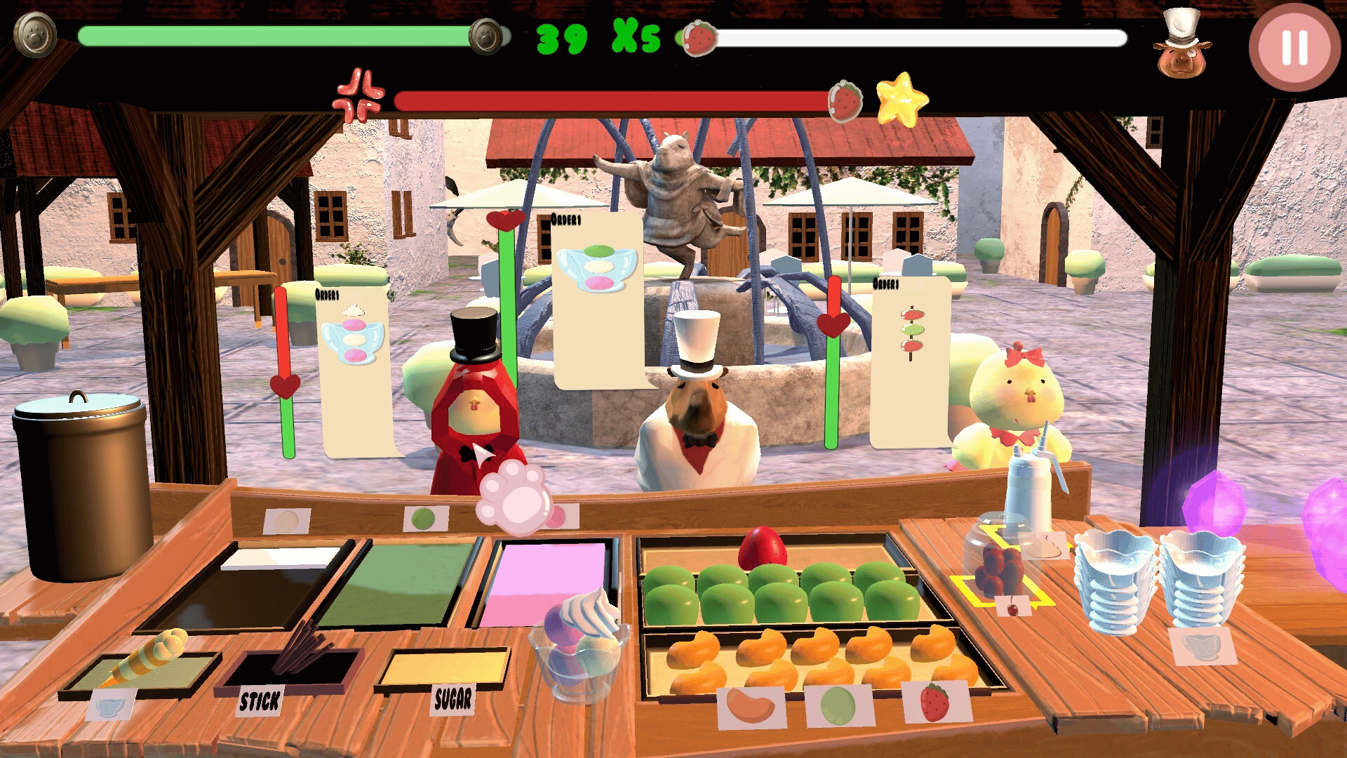 Purrfect Stall! Is a game A cosy 3D management game where you serving ice cream and tanghulu to customers and fight off your boss Capymayor at the end of each day. With each day the game gets quicker and boss gets more intense. As you try and keep on top of managing the store.