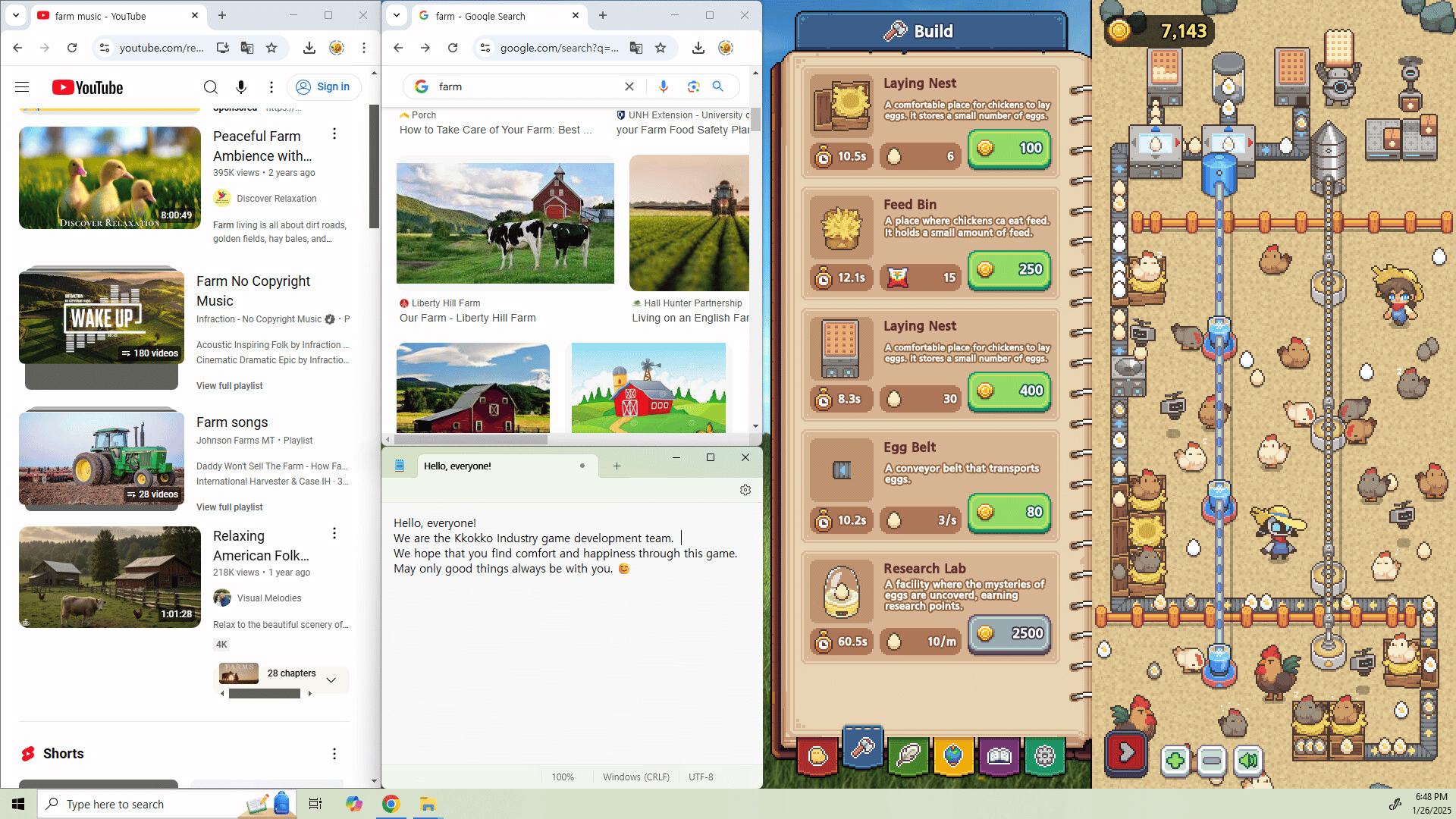 Kkokko Industry is a relaxing idle game where you manage a chicken farm. The game runs on one side of your monitor, allowing you to enjoy it comfortably while working on other tasks.