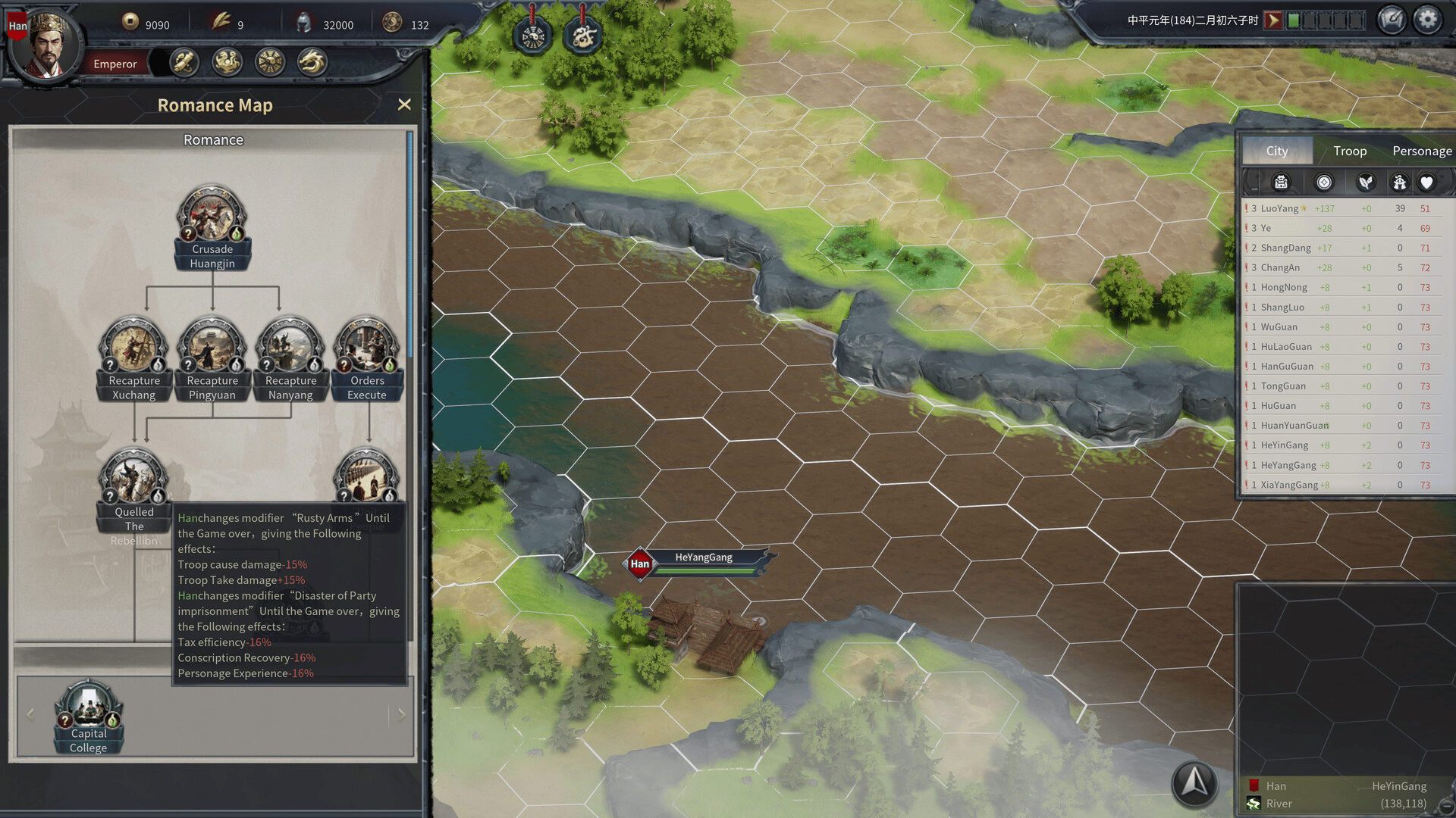 Return to the Three Kingdoms period. On the grand strategic tactical battlefield, use terrain for defense setup and resource allocation to shift the battle situation. Control the war via hexagonal grid movement and tactical ability activation, and unify the realm.