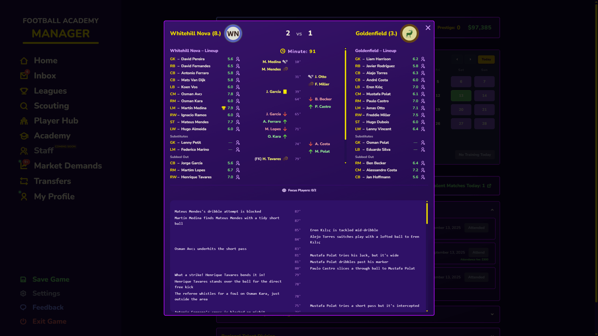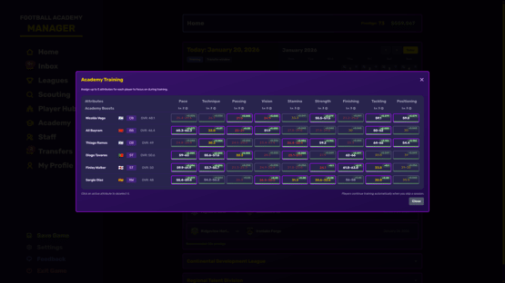 Run your own football academy. Scout and discover young talents, evaluate their potential, manage their development through training, and negotiate transfers with clubs to grow your prestige and influence.