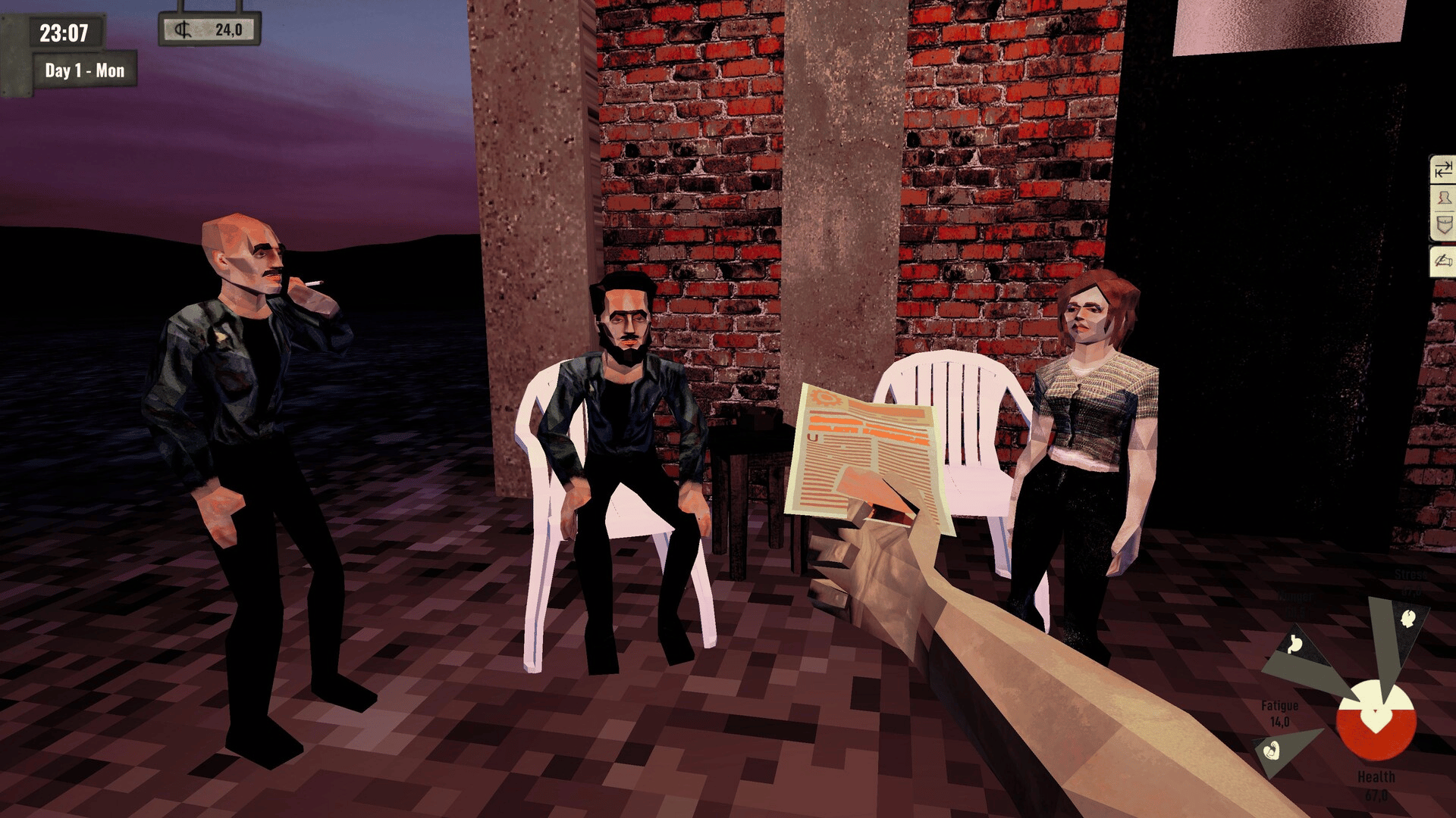 Arbeiter is a survival-management game about working-class life. Work to survive, balance hunger, stress, fatigue and wages, organize fellow workers, manage unions, and spread your ideology. Or go your own way.