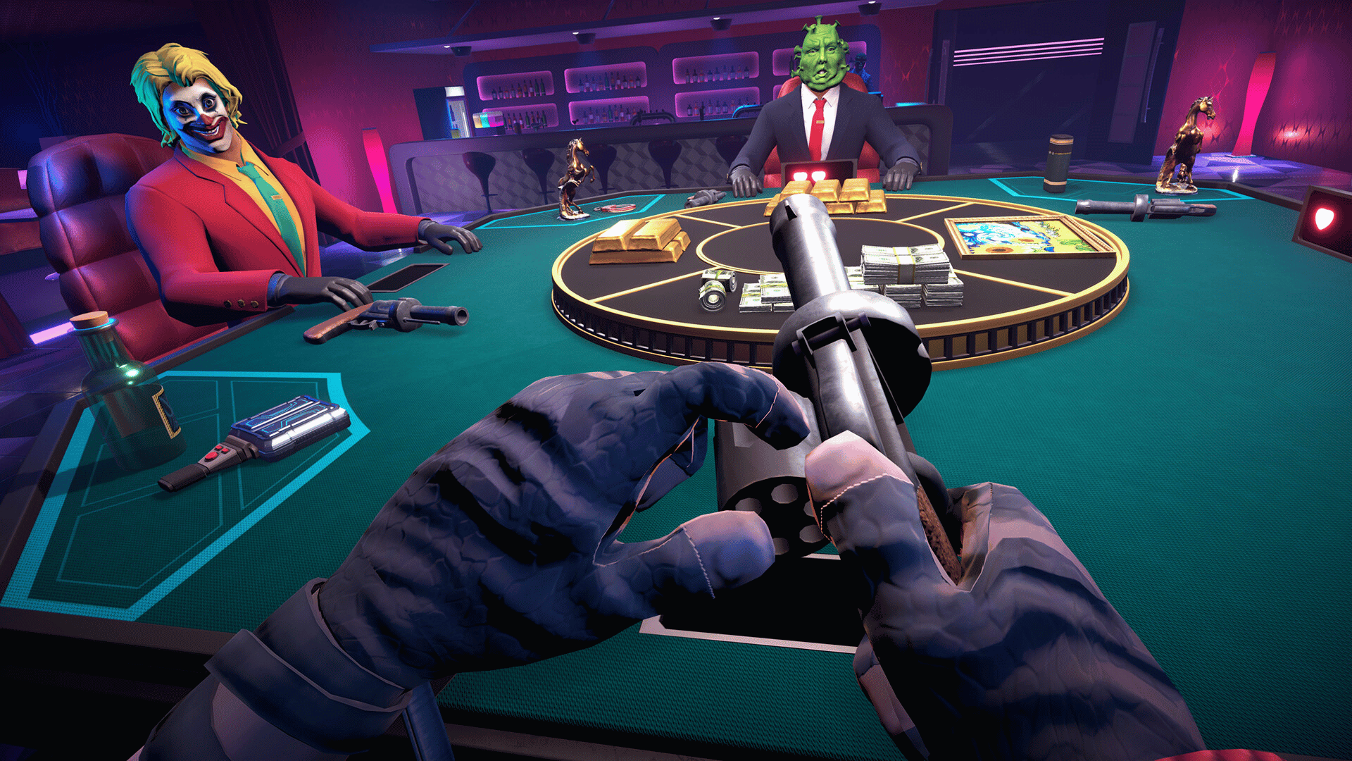 Step into the shadows of a luxurious nightclub casino, don your mask, and join 4 to 6 players in a deadly multiplayer game of wits and chance. Bullets are your only companions in this life-or-death showdown.