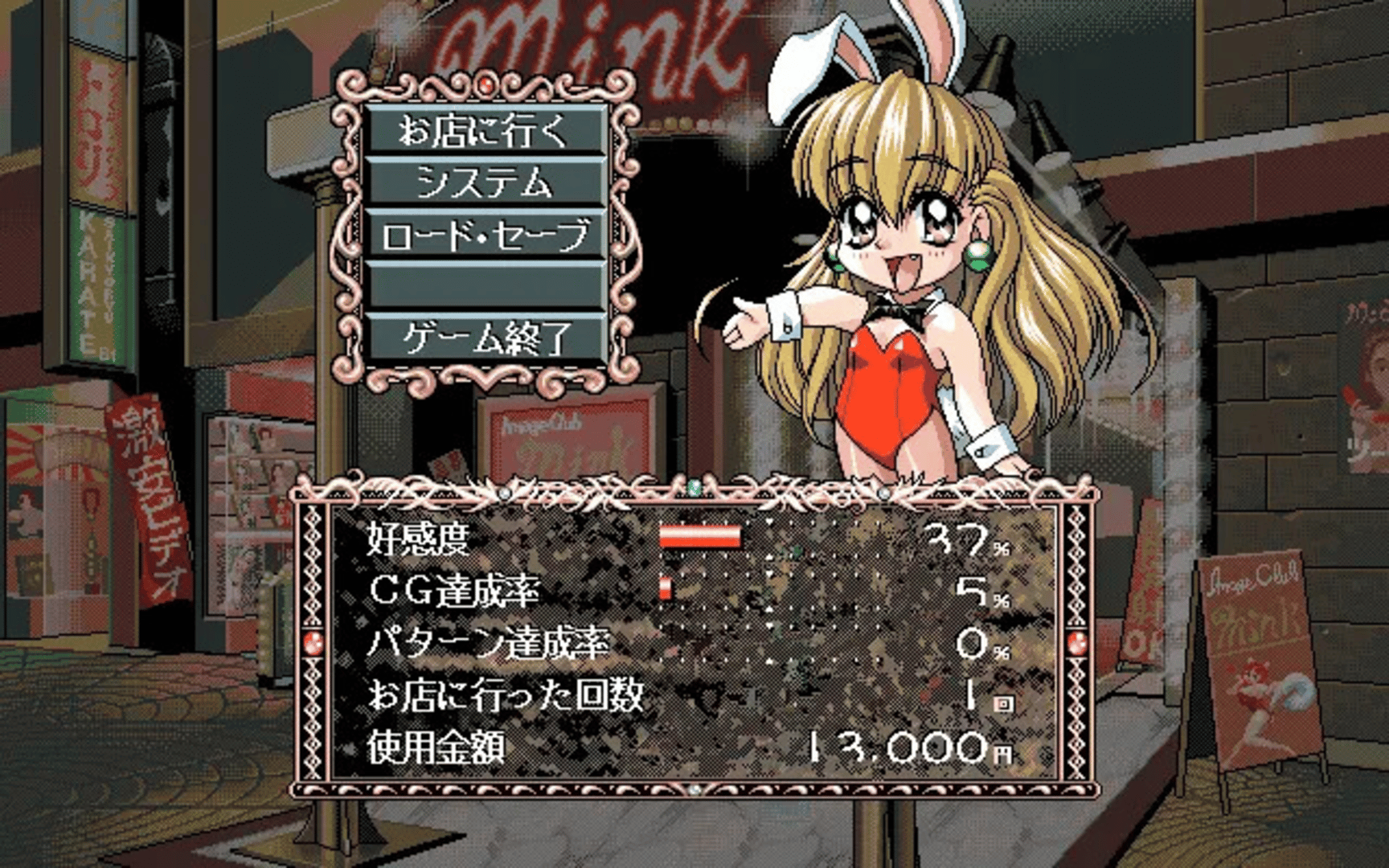The protagonist is an average guy. One day in the street I meet up a agent who introduces me into a H shop (Image Club). I'm unwilling because it may be coarse, but he confidently says to me that there's a pretty girl in the shop, so I change my mind and get in. Yes! A beautiful and nice girl named Candy welcomes me. From now on the story's simple. We talk familiarly for a while and take a H situation-play. From time to time I meet up a girl in the street who resembles Candy in appearance but she says she doesn't know me. Who is she?
