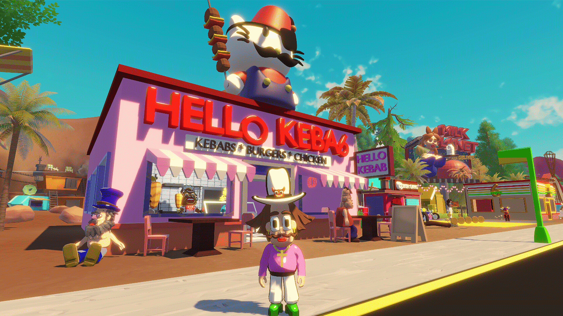 Play as a washed-up rockstar Ravy Davy battling aliens, biker gangs, satanic cults and whackjobs in the desert town of Ambiguity—ruled by villain Margaret Doom, a chain-smoking OAP on a mobility scooter.