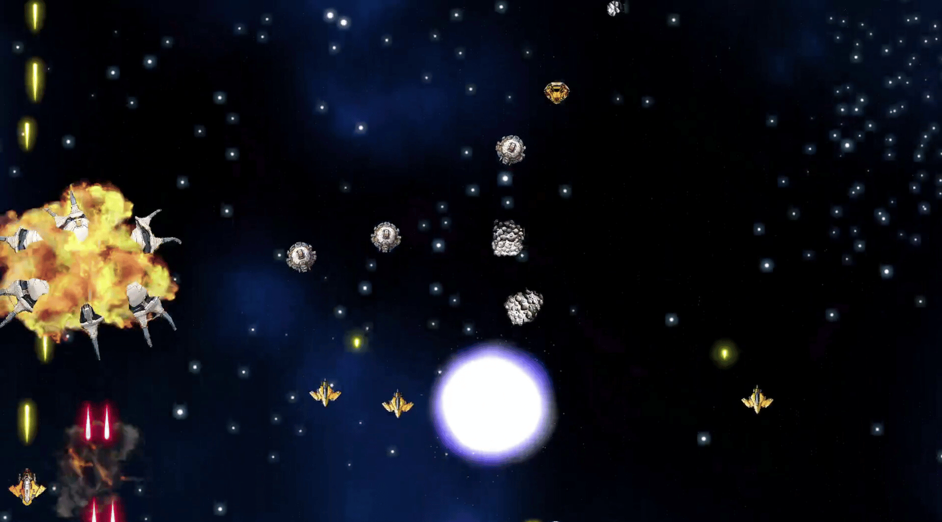 GAZAR is an intense vertical arcade space shooter where you fight against an alien fleet destroying the galaxy. Battle through Story Mode or test your skills in Infinity Mode with 5 difficulty levels and leaderboards. GAZAR delivers non-stop action, stunning visual effects, and dynamic combat.