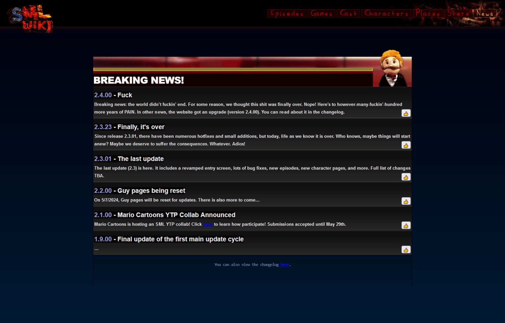 SMLWiki.com is a surrealist horror-comedy browser game, based loosely on Super Mario Logan, featuring many puzzles and rabbit holes.