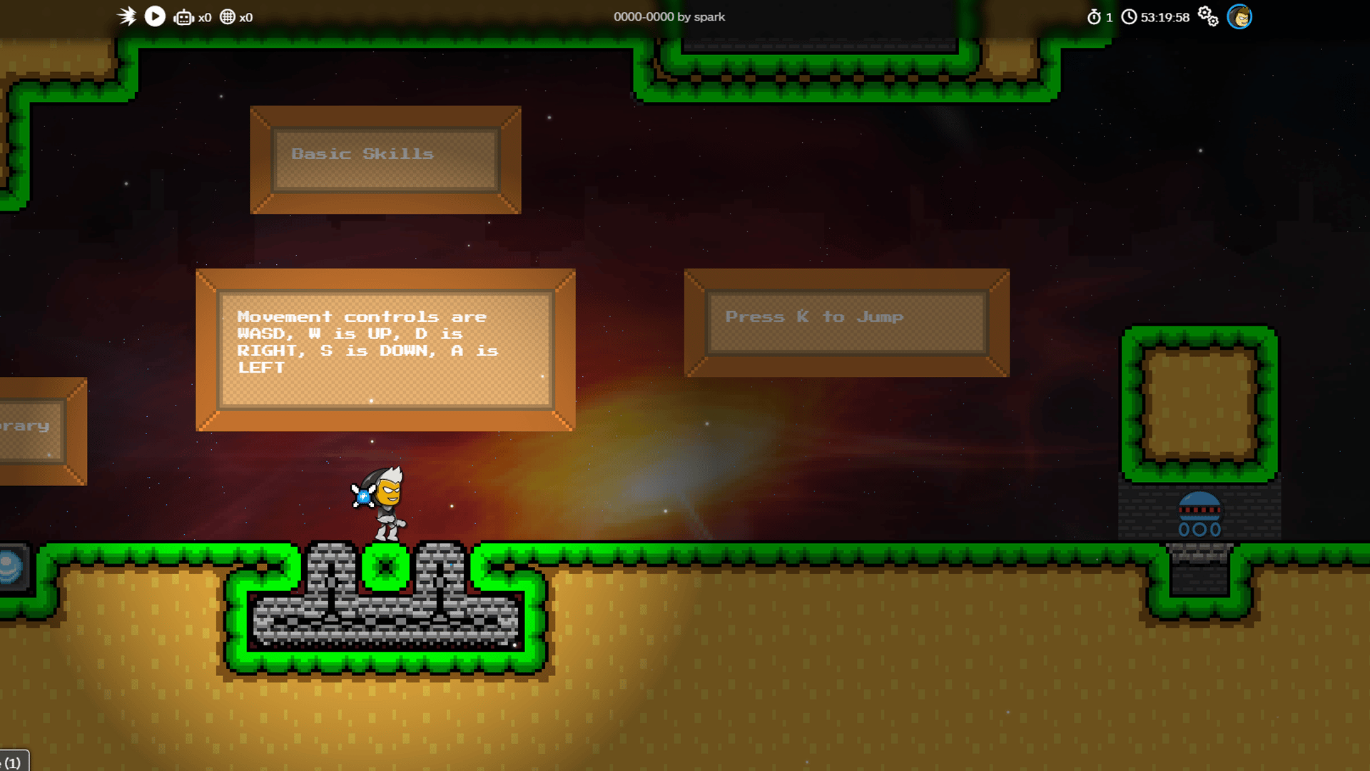 An action 2D platformer, browser based, maker video game. Build, play, and share levels with your friends, or challenge yourself with endless variety. Free to play, visit the website to get started.