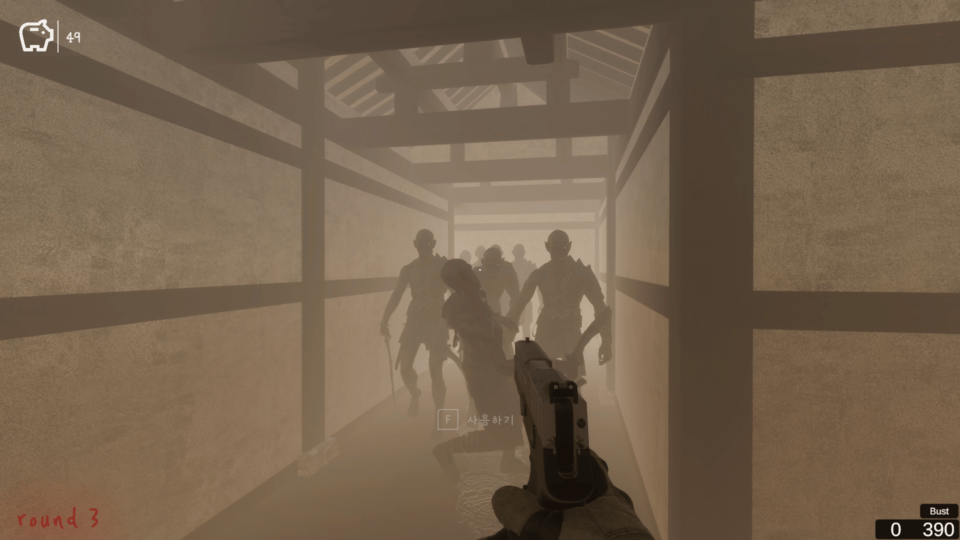 Survive the zombie horde invading your Hanok! Fend off zombies that break through windows with two different guns, and overcome danger with the items dropped upon defeat. Buy permanent health from the vending machine to survive longer against increasingly powerful zombies, and compete for rankings with your friends!