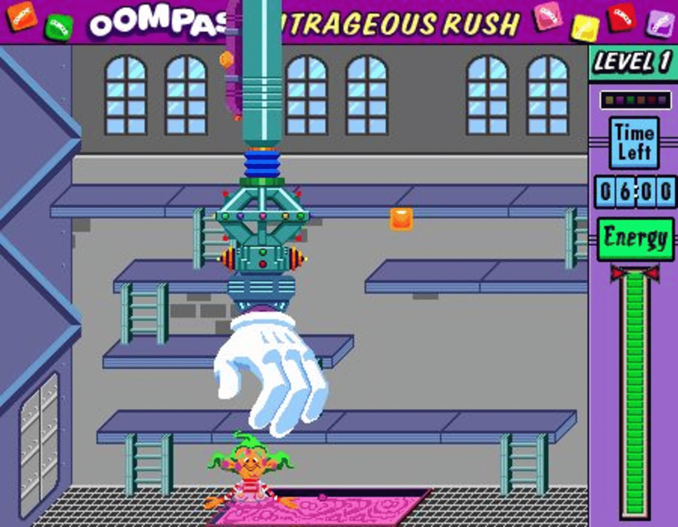 A platformer where you must help the Oompa Loompas retrieve the missing OOMPAS candy before Willy Wonka gets back.