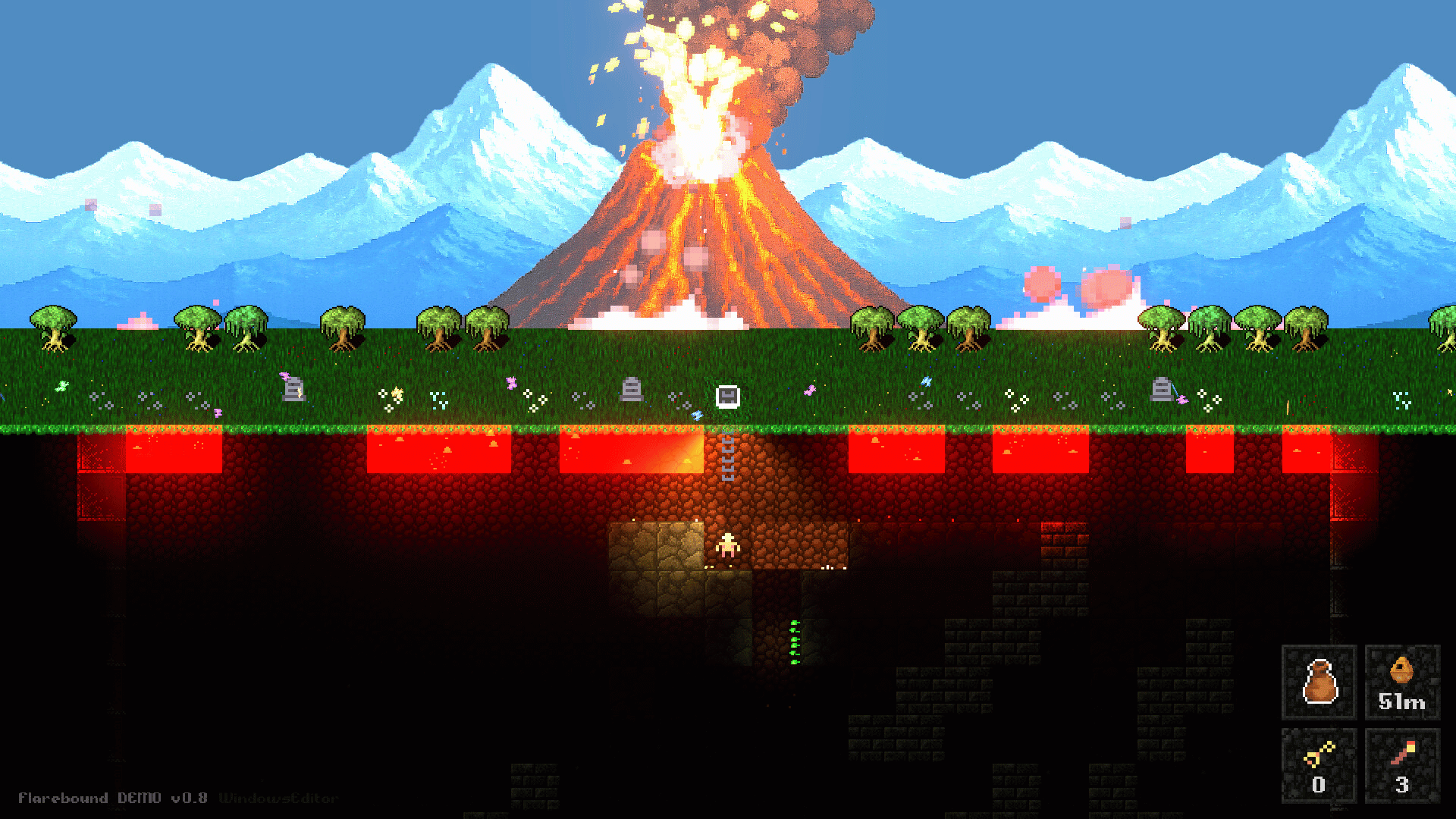 A tactical roguelike where you throw flares to briefly pierce the darkness, draw a path in pitch black, and race dripping lava following you through the volcanic tunnels. Plan fast, dig deep, and descend to the safe place before the lava swallows everything.