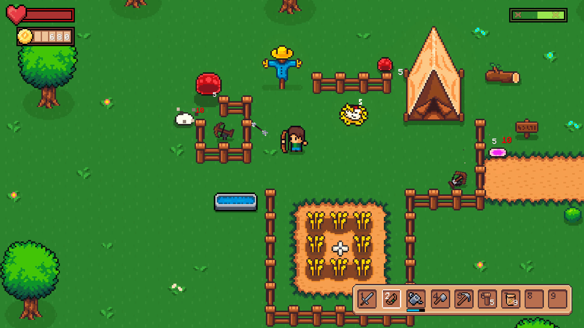 Plant, harvest, and defend your farm! Build turrets, gather resources, and fight off waves of enemies. And most important defend your CHICKEN!