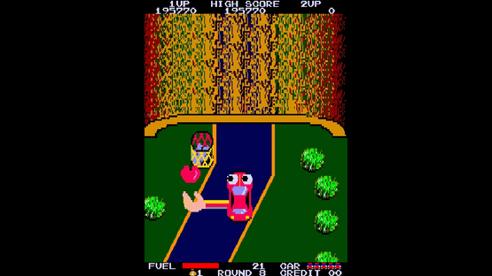 Munch Mobile is an action game released by SNK in 1983. Pilot a mysterious car with arms, picking up fuel and food along the way. The goal is to make it home before your fuel runs out. Place trash left from your food into bins to earn big points! Show consideration in public spaces and enjoy a fun drive!
