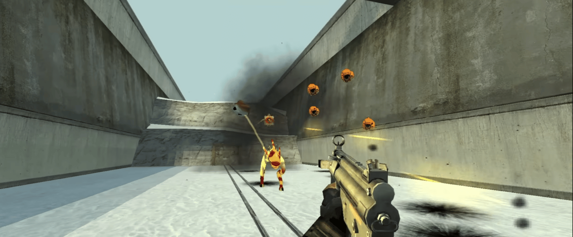 City-17 is in for a long, cold Winter... The anarchy that followed the death of the Consul by Santa Claus' hands has resulted in the hunting for 3 Christmas artifacts, the forming of several citizen factions, and your quest to retrieve MacGuffins in the possession of charismatic idiots. Create allies. Create corpses. All in your path to salvation. Who will you amend with and who will you betray? Will you learn that your actions have consequences? Solve puzzles, ask around, make friends and outwit your enemies in uniquely designed scenarios from the depths of City 17 and beyond. The Power of God only belongs to the strongest... Or so they say. Find out the truth in your own path and collect the Christmas artifacts across an epic journey spanning mine carts, trains, roads, and festive snow-covered terrain stained in blood and bullets. One Man Army Studios presents Get Your Free Christmas Tree, a modification for the leaked Half-Life 2 beta engine. In development for a year, GYFCT offers a unique experience detached from the common notions of Half-Life lore to bring the spirit of Christmas to the dark and gritty world of City 17.