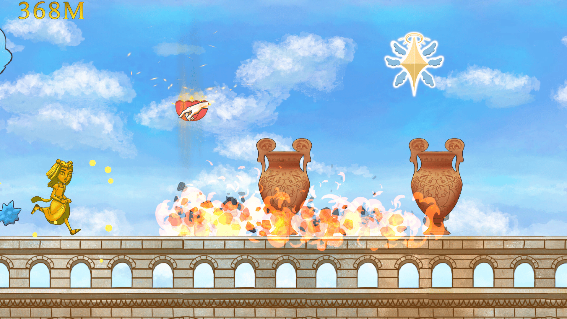 A fast-paced subversive endless runner, where you play as the runner's guardian angel. Protect them with your mouse by clicking and dragging obstacles out of the way as they running through ancient rome.