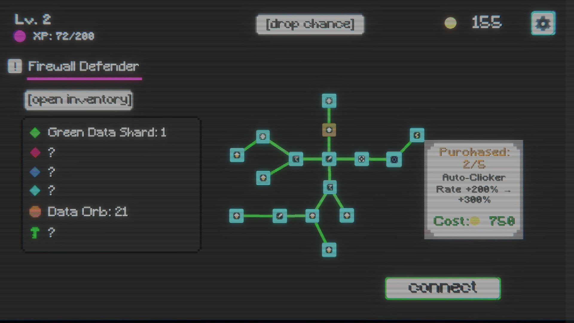 Cyber Shard Clicker is a short cyberpunk incremental game. Break down geometric shapes representing hostile cyber attacks against Vault Inc., gather data shards, upgrade your hacking skills, and unlock permanent boosts in the vast skill tree to push your cyber assault even further!