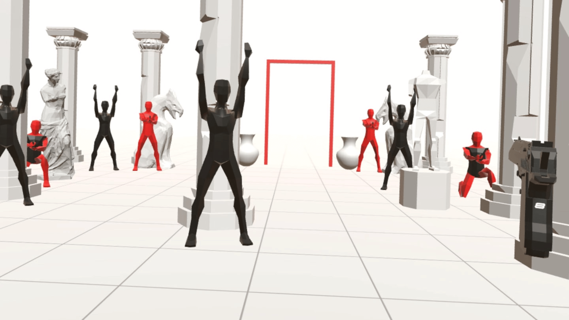 Prepare for a heart-pounding race against time in this intense shooting game. The clock is ticking: wipe out all enemies in under 17 seconds or face defeat. You have a pistol with a few bullets available, plus some melee weapons on a table. Please pick them up and use them wisely. When you finish the bullets in the gun, you can throw your weapons at the enemies. Do not kill innocents, otherwise it'll be game over. You can see an old computer on the right side of each area. Insert the floppy disk labelled "EXTRA BULLETS", grab the muse and play a cute minimalistic game to gain an extra bullet every 50 points reached