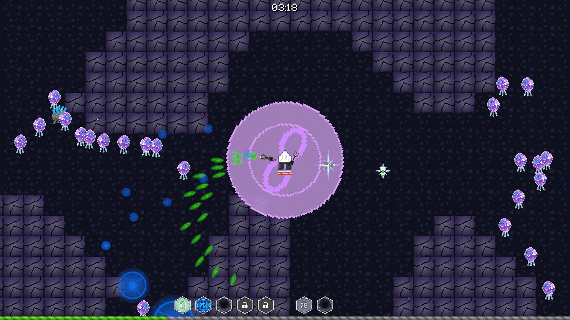 You are a wizard from another world, using Math to create your own magic, entering different spaces, facing a constant stream of enemies, plundering various treasures to fill your vault. Of course, you have to live to take away these spoils.