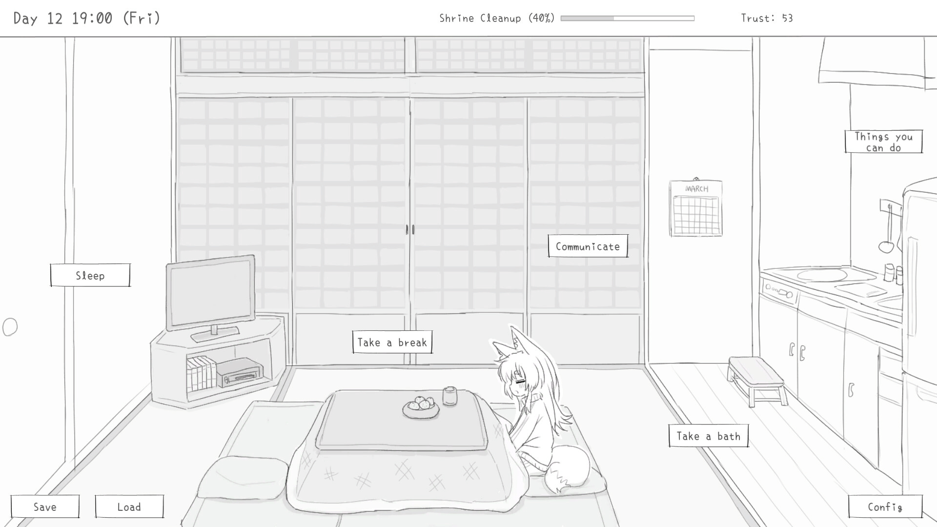 Care for a local shrine and befriend Mao, the fox girl who lives there. In this light-hearted simulation game, you’ll have 30 days to balance your time between your tasks and building a relationship with Mao. Use your time wisely, and who knows? Maybe she'll let you stay longer.