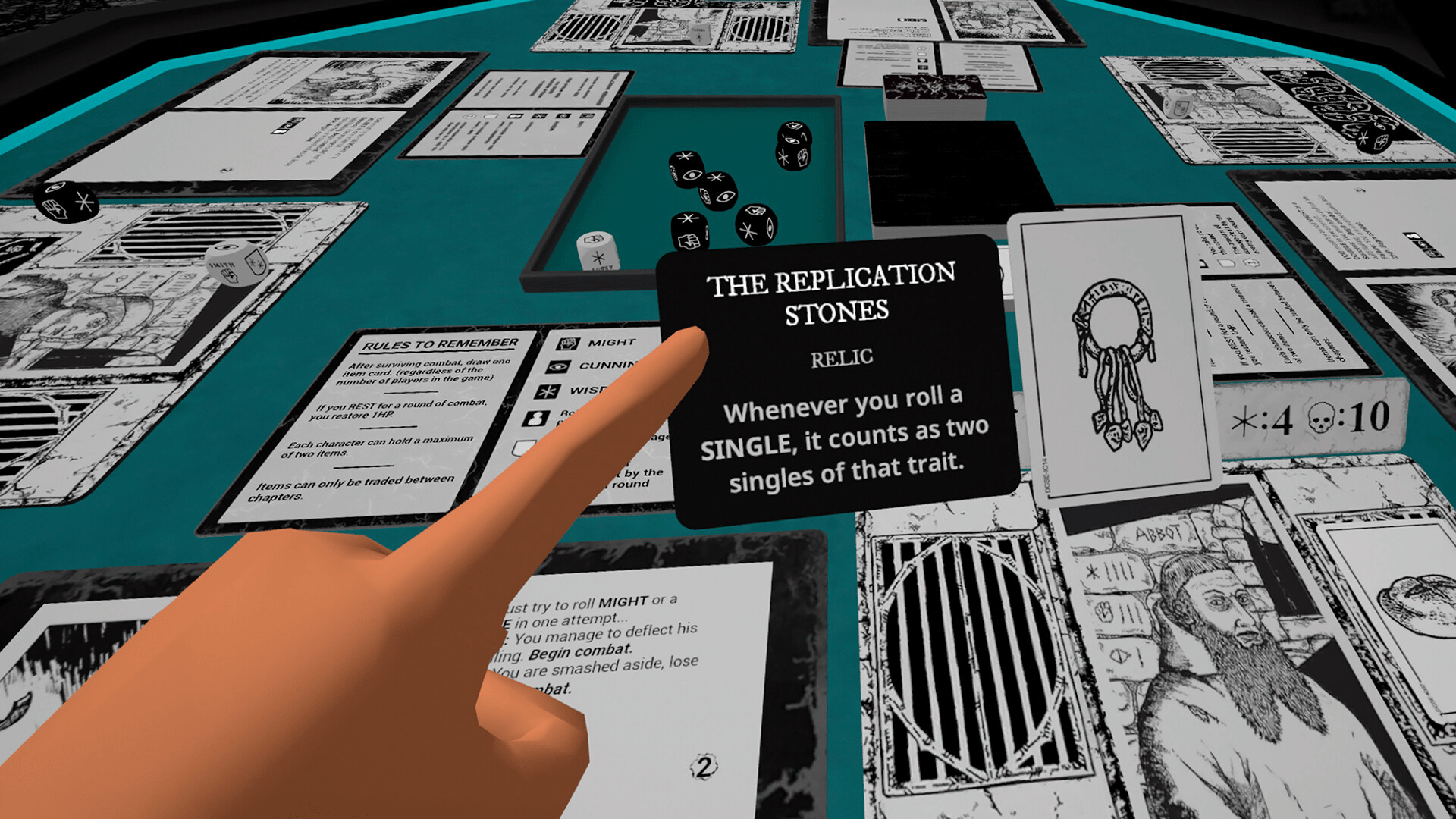 Face traps, monsters, and grim choices in this retro-style cooperative adventure: Escape the Dark Castle, fully adapted for VR on All On Board! Choose your prisoner, roll their unique die, and rely on teamwork to survive. Will your group escape the Dark Castle, or be consumed by the horrors within?