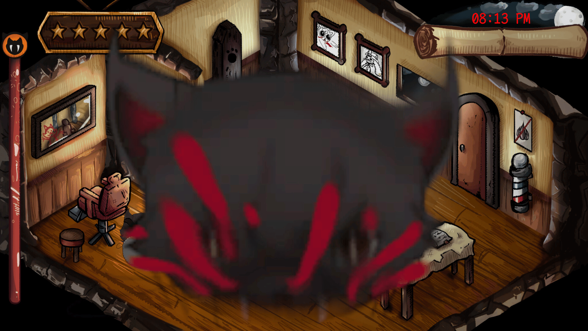 You're Count Meowcula, a vampire cat that opened a barbershop. Wash and cut hairs, also clean your establishment and try not to bite your clients in this creepy cute game with minigames and chaotic controls. Manage your instincts and your reputation. Who said that beauty does not require sacrifices?