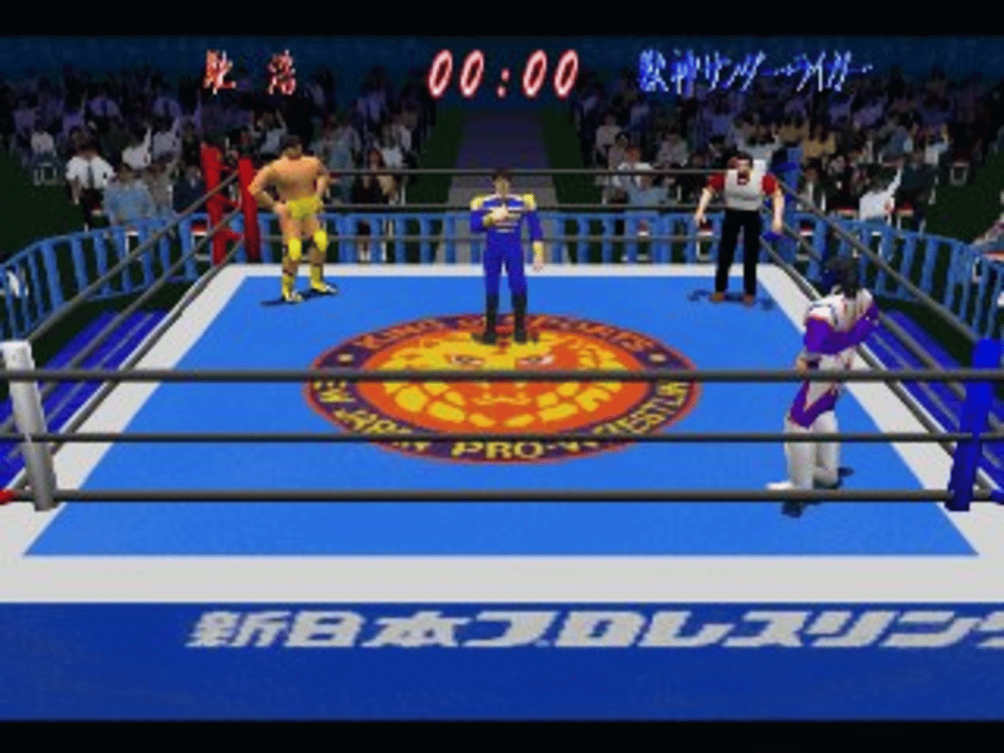 The official New Japan Pro Wrestling video game! Play as legends such as Hashimoto Shinya or enjoy a full roster with names such as Masahiro Chono, Keiji Mutoh, Kensuke Sasaki, Hiroyoshi Tenzan, and Jushin Thunder Liger. The signature moves from these 6 competitior feel real, as you kick, dragon screw, DDT, and fight by making full use of the familiar tricks.