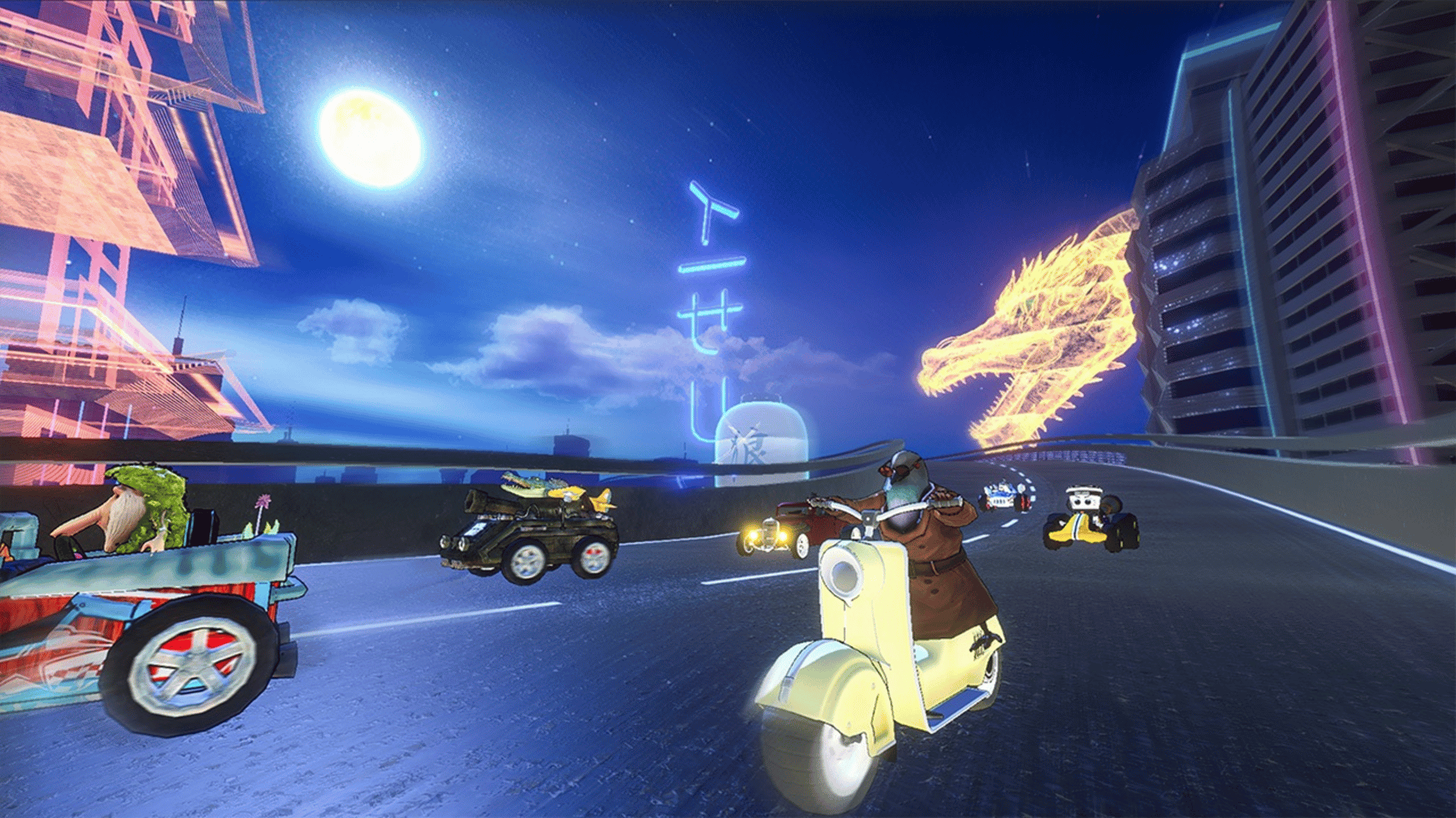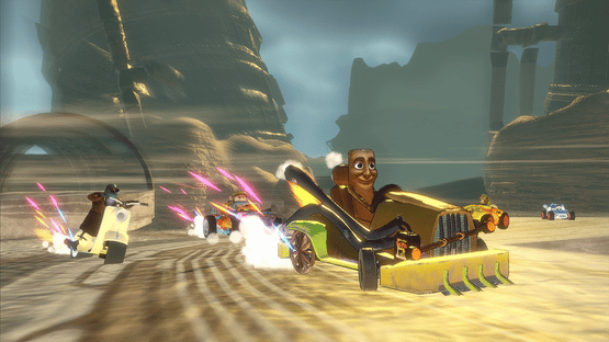 High-speed chaos with meme-fueled racers Unlock tracks, drivers, and abilities Split-screen fun for two players!