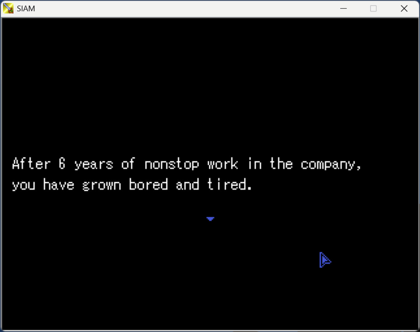 You tried to quit your job but your company didn't let you. In order to motivate you to keep working, you were assigned a virtual assistant named SIAM.