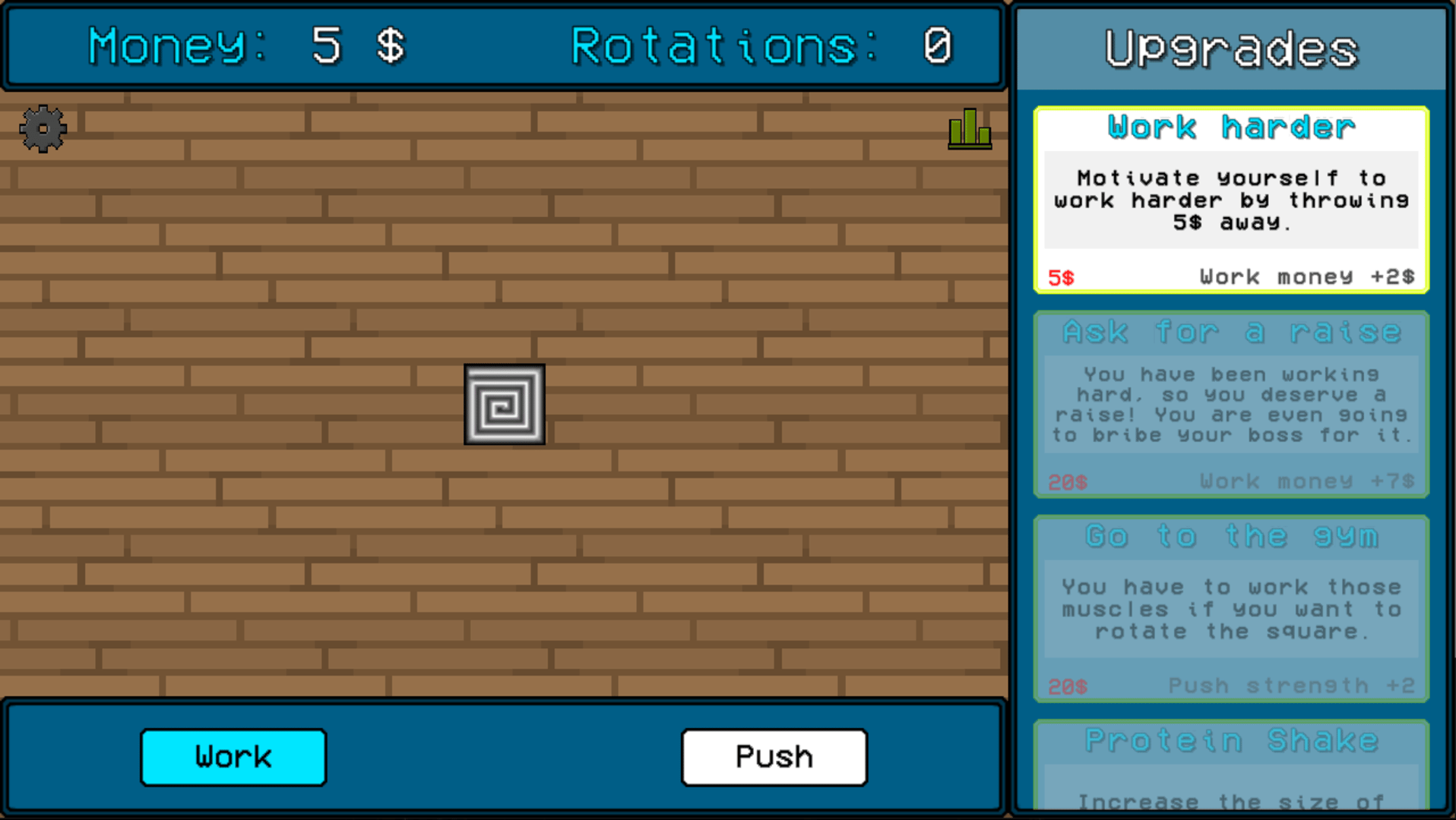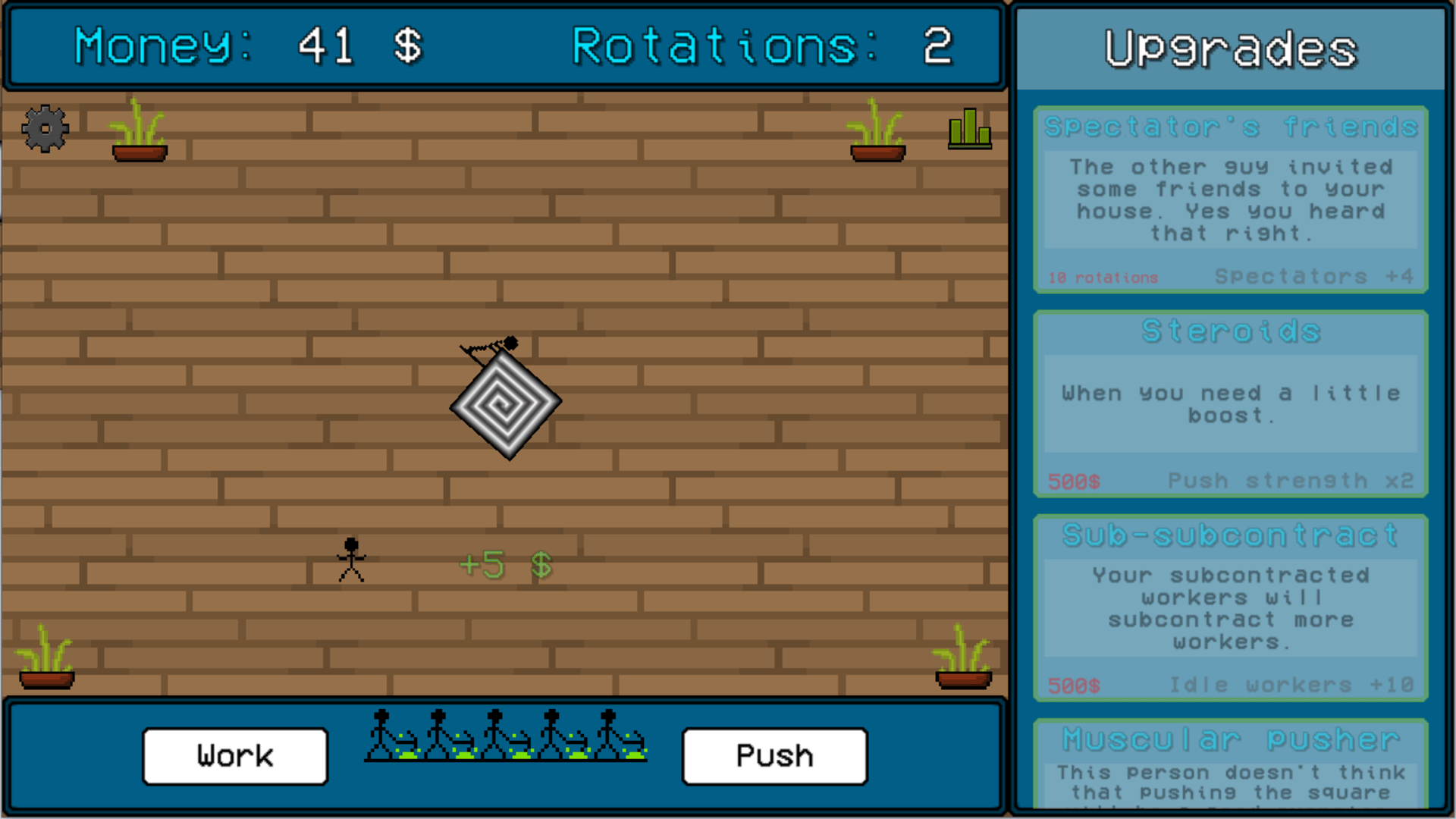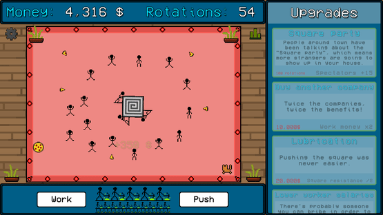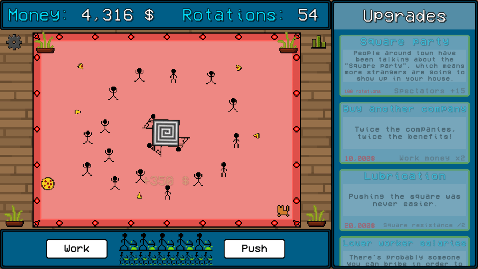 A mysterious square has appeared in your house. It seems to do nothing but rotate clockwise, so you are gonna spend all your money making sure it does.