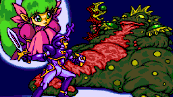 The land of Tarron is under siege and you must save it from the wicked Drillkor Empire. A beautiful guide will help you along the way as only you, The Dynastic Hero, can deliver the goods! The Dynastic Hero is a slightly re-branded version of Wonder Boy in Monster World for the Turbo Duo.The game features palette-swapped visuals, new insect-themed graphics for main characters (and insects' natural predators as bosses), a Red Book audio soundtrack which is completely different from the Wonder Boy original, and anime-style cutscenes at the intro and ending. Shion was renamed Dyna and was modeled after a Hercules Beetle, and the final boss was changed to a giant lizard king. An English-language version was also produced, but both were built off of the Japanese version of Wonder Boy in Monster World. They feature the same difficulty and mechanics as the Japanese original.