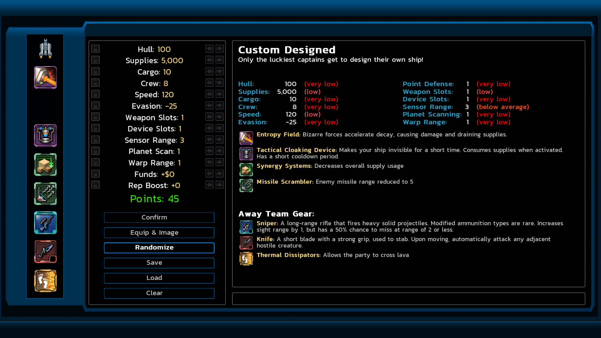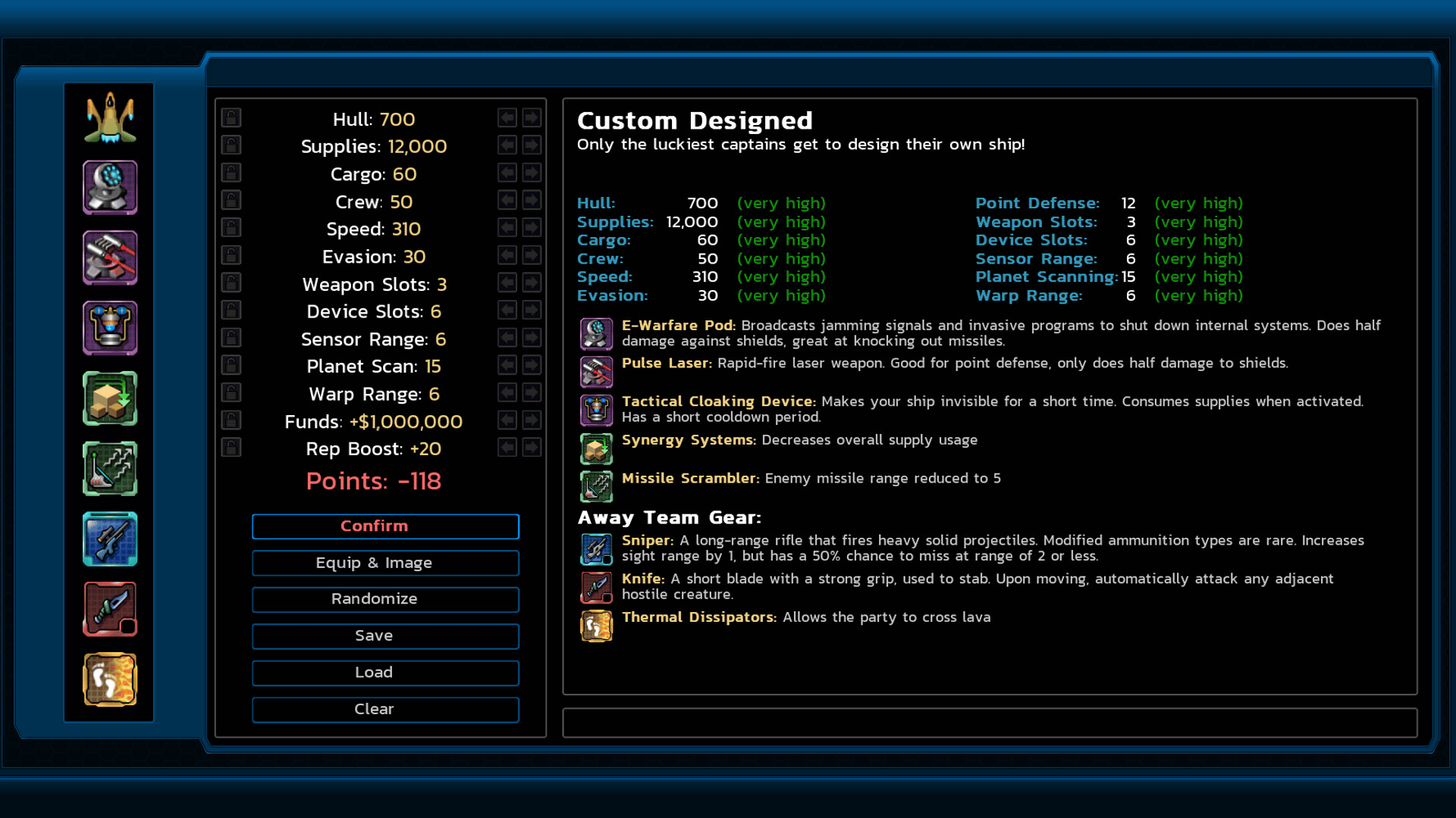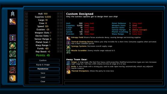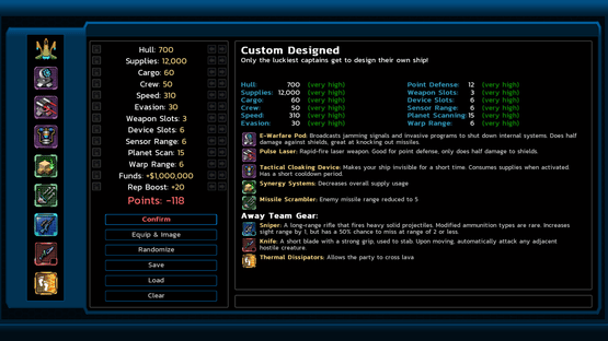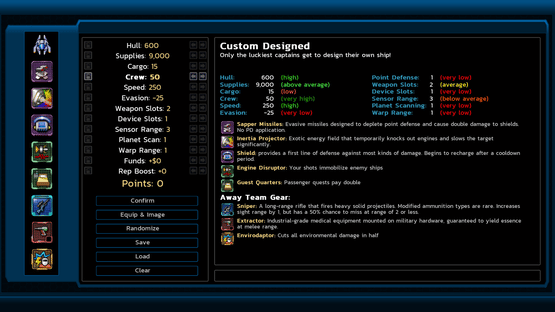 Design your own custom starting ship with a point-based system and access to every weapon and device in the game. Tow 5-deck shipwrecks to get more points. Space stations will offer more ships for sale, and the asteroid base will have a brand new ship upgrade service: the Shipwright!