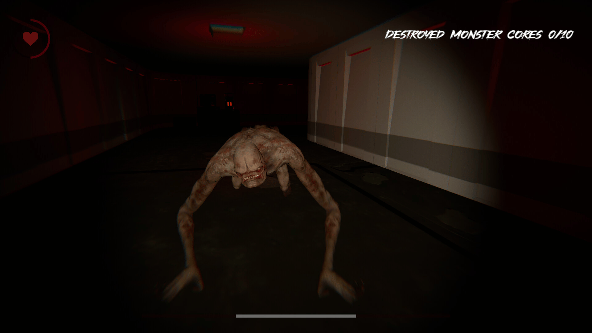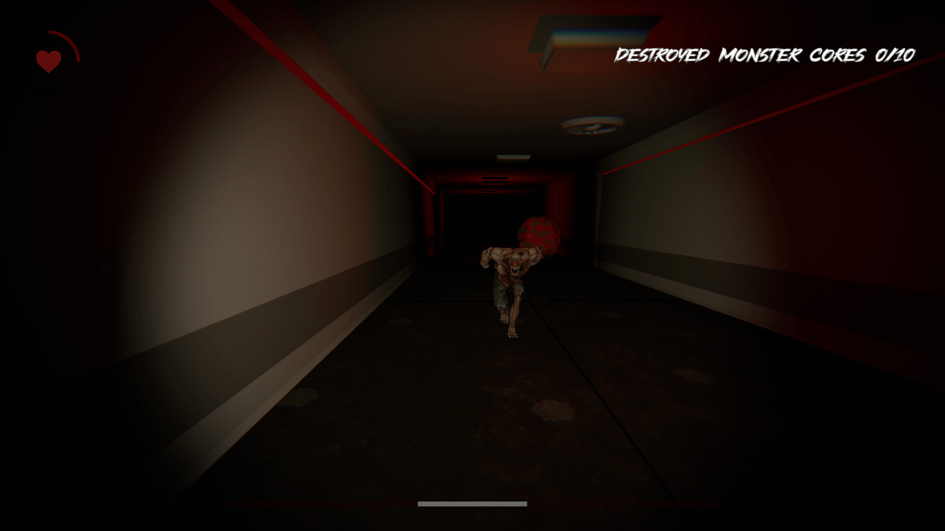 Coredestroyer is a horror-action game where you run through dark corridors, hide from monsters, and destroy their cores before they catch you.