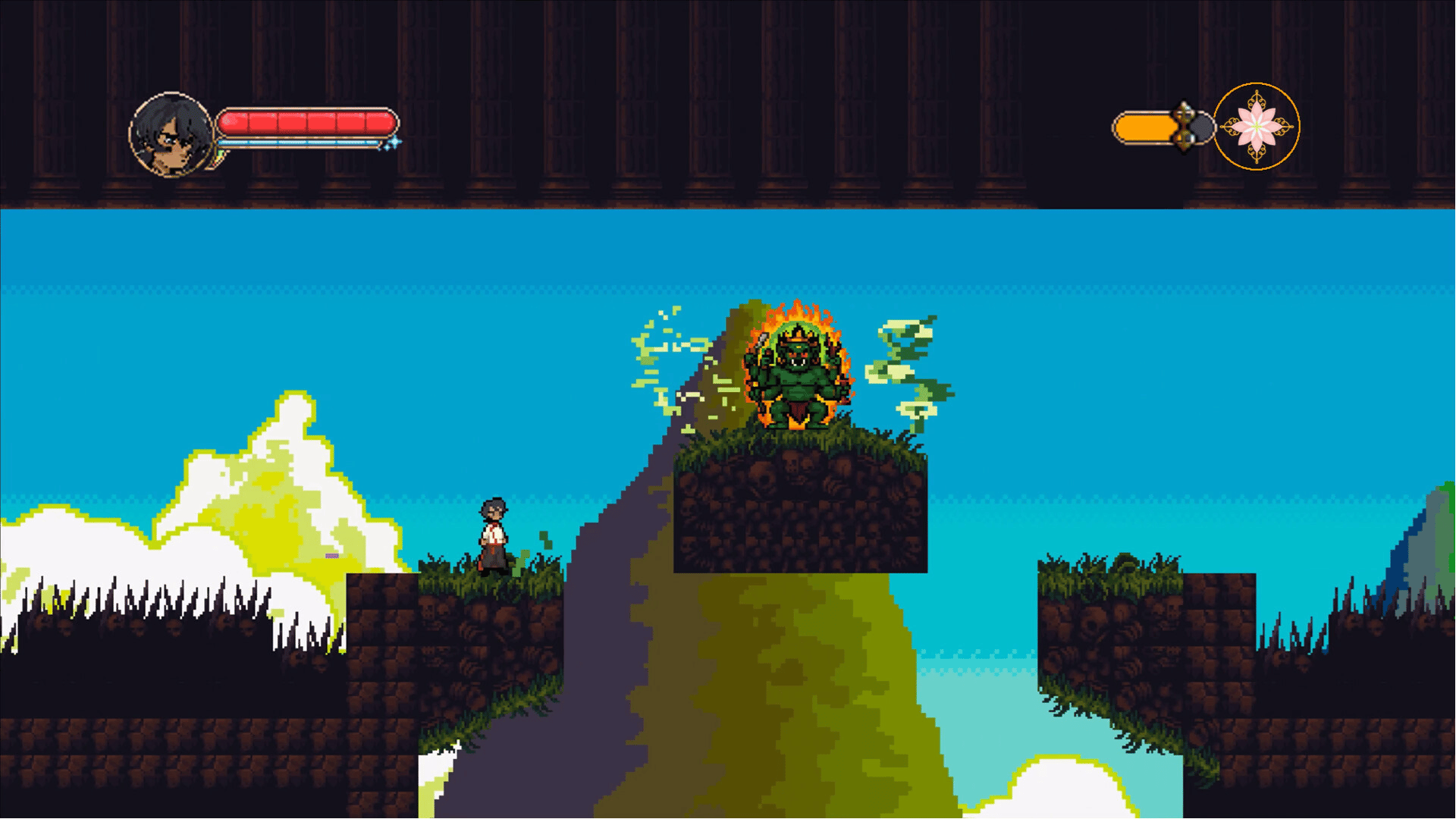 Jigten is a 2D Metroidvania steeped in mindfulness and Himalayan fantasy. Survive divine trials in the Tibetan afterlife, purify corrupted souls in the living realm, form skill pacts with mythical beasts, and use meditative mechanics to slow time, reveal secrets, and choose your path to liberation.