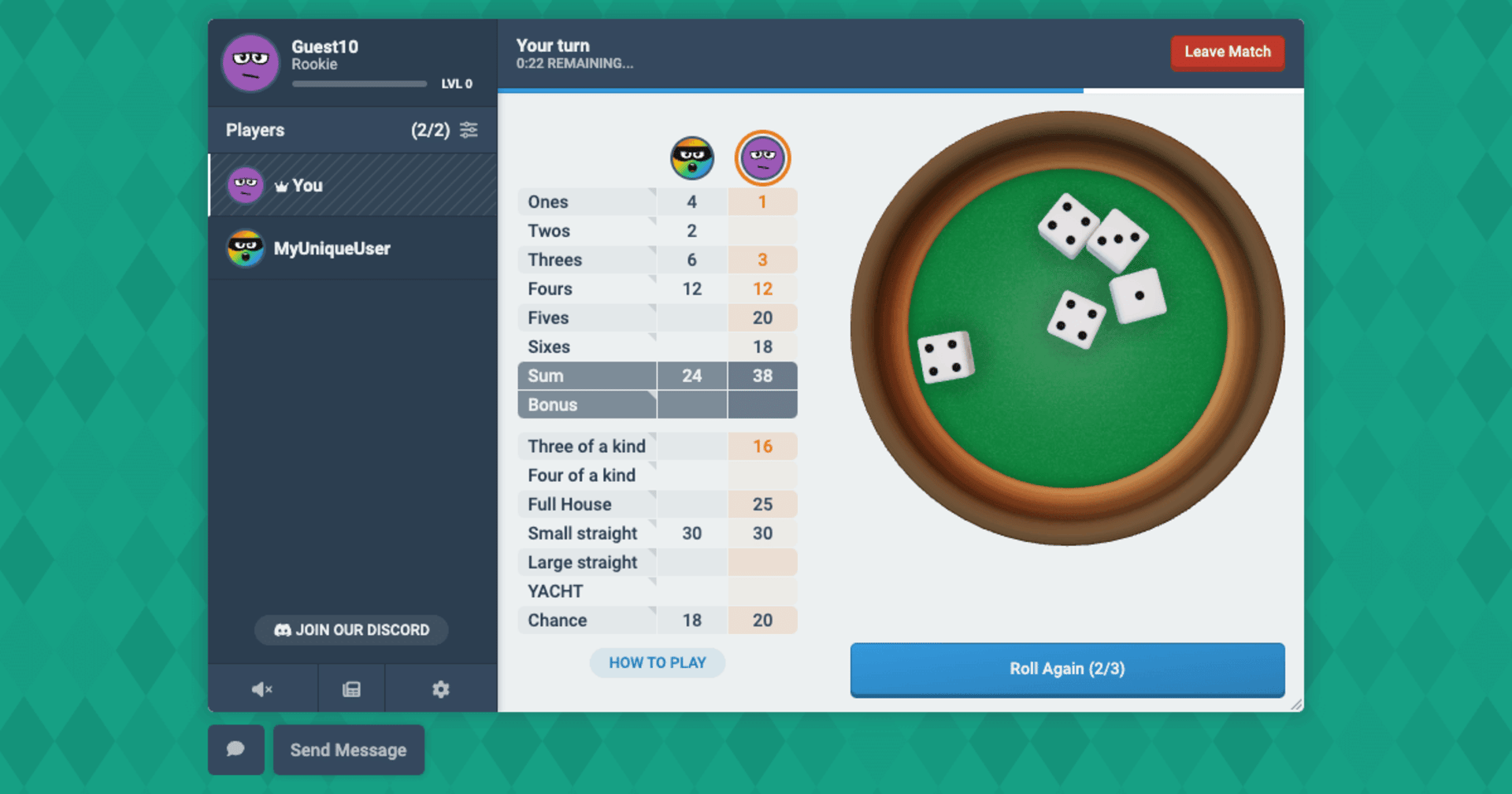 Yacht is a browser-based multiplayer dice game that draws inspiration from the classic Yahtzee format. Players roll five dice to create various high-scoring combinations, such as Full House or Yachts. The game features customizable rules and difficulty settings, allowing players to tailor their experience. Yacht can be played with friends or against AI opponents, providing an accessible and engaging gameplay experience.