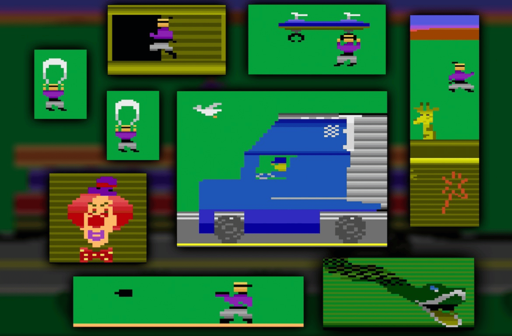 The Heartland Traveling Circus is on the move, with a huge convoy of semis hauling down the highway. In CIRCUS CONVOY, you are Andre the Magnificent, resident strongman a.k.a. "the Chameleon". As the Big-Topbarrels down the black top, Andre learns that a rival has sabotaged their gear, possibly scrapping the next show. Andre springs into action because, as everyone knows, the show must go on!