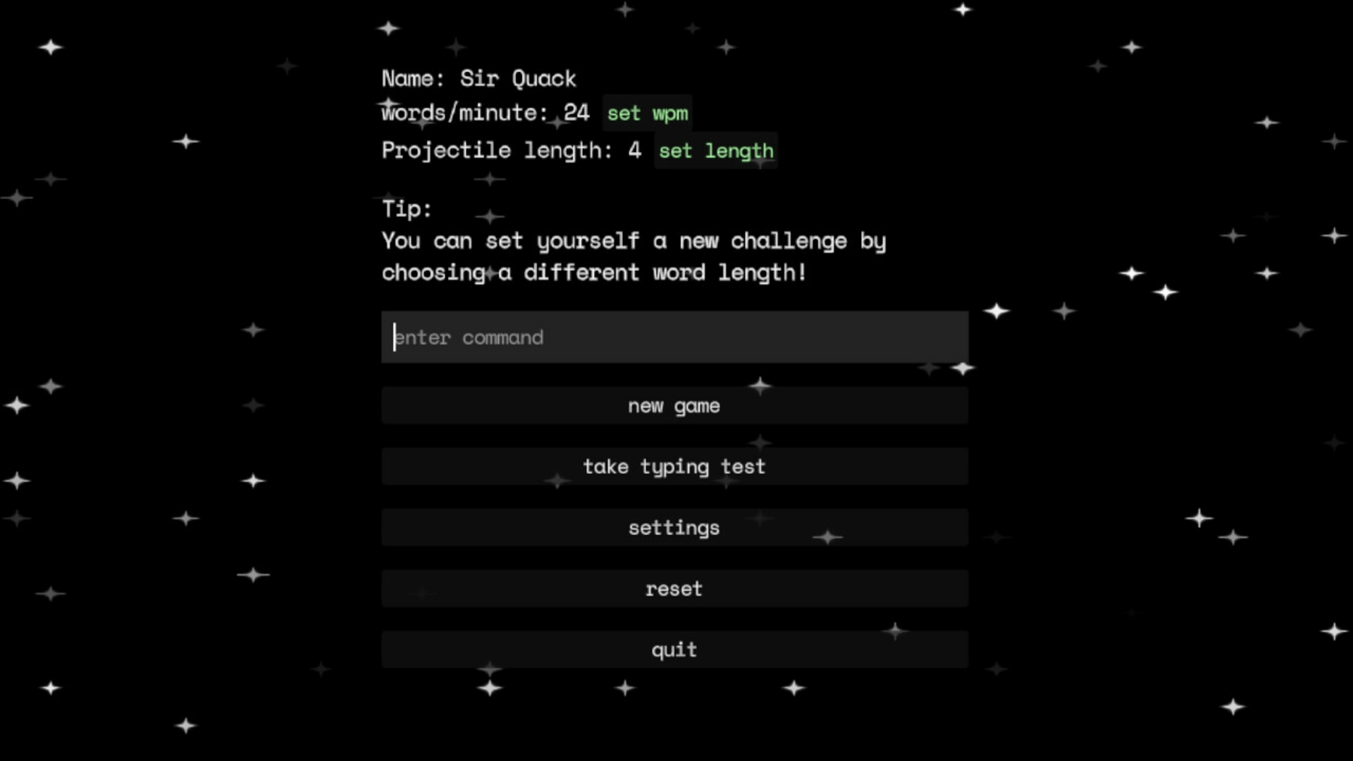A short and entertaining typing game, where you need to type your way through space to find a way home. Upgrade your vessel and overcome enemy resistances with your linguistic arsenal. Hack away in this roguelite deep space typing bonanza.