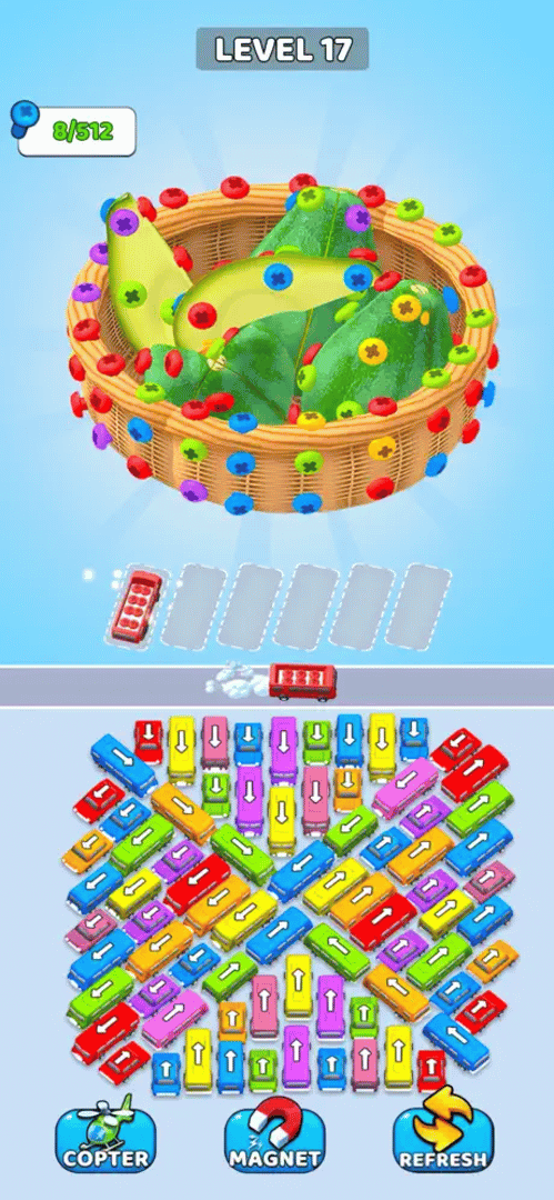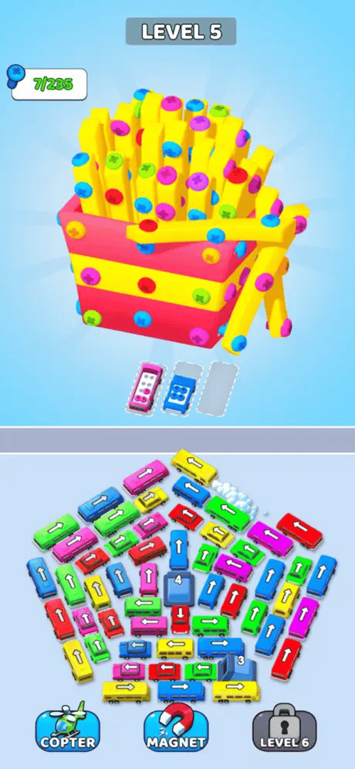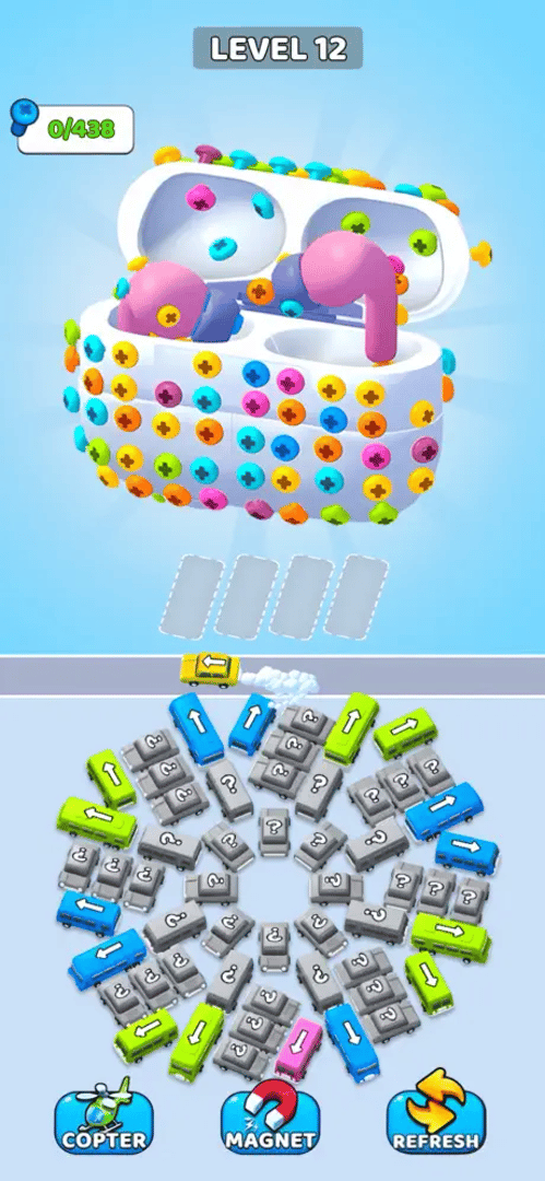 A unique puzzle adventure that combines car jam games, screw sort challenges, and 3D disassembly mechanics!