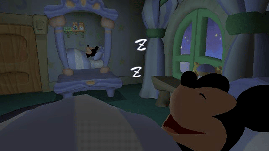 One night, a mischievous ghost traps a sleepwalking Mickey Mouse in a magical mirror. Returning to his bed won't be easy, though, because Mickey must first recover the broken mirror pieces that have been strewn about the house by the prankish poltergeist. Just as in a Mickey cartoon, you will have to outwit enemies and pull gags. You will also be able to uncover special souvenirs, such as Pluto's collar or Minnie's bow, which are all displayed in Mickey's room at the end of the game.