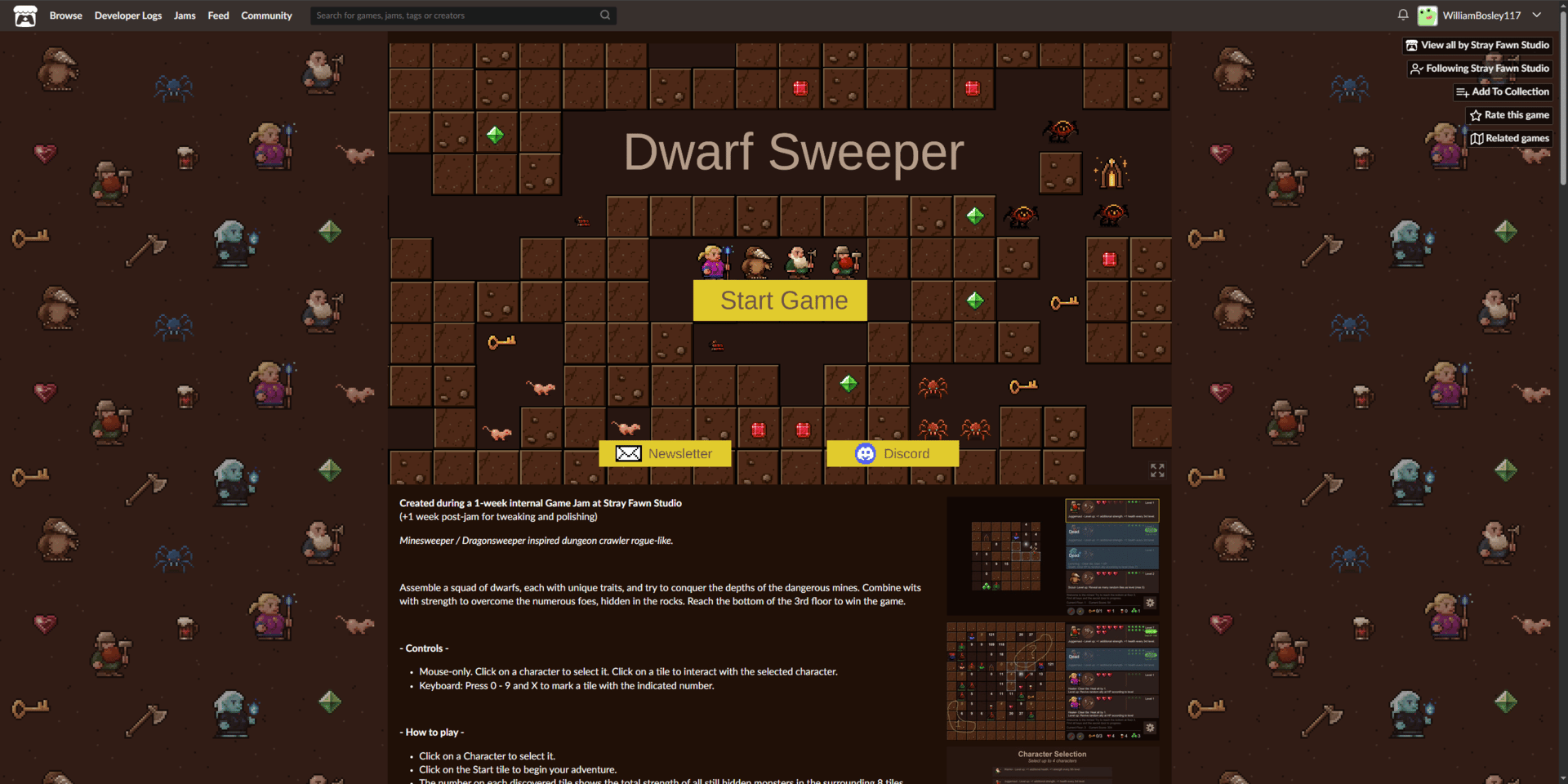 Created during a 1-week internal Game Jam at Stray Fawn Studio (+1 week post-jam for tweaking and polishing) Minesweeper / Dragonsweeper inspired dungeon crawler rogue-like. Assemble a squad of dwarfs, each with unique traits, and try to conquer the depths of the dangerous mines. Combine wits with strength to overcome the numerous foes, hidden in the rocks. Reach the bottom of the 3rd floor to win the game.