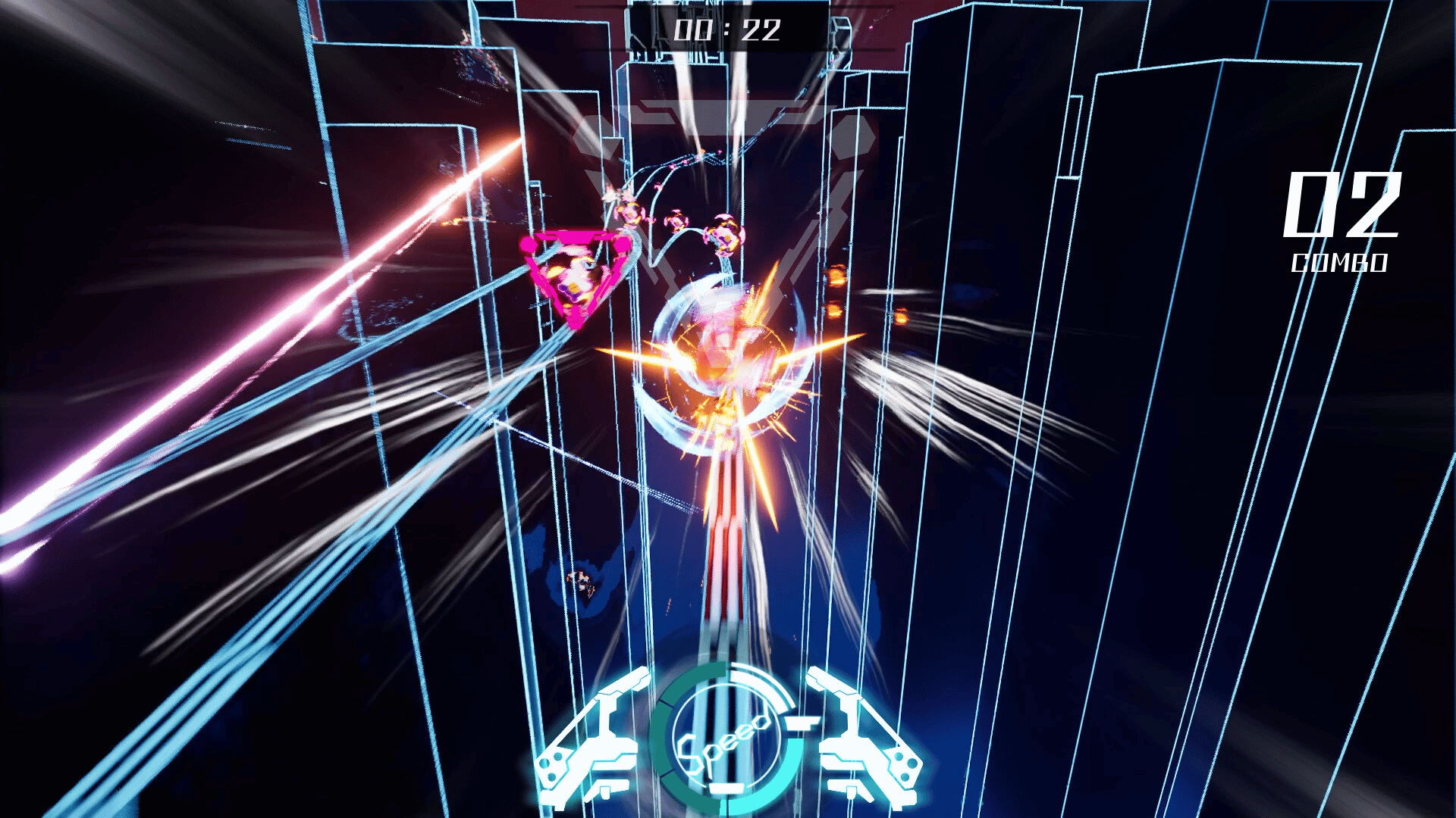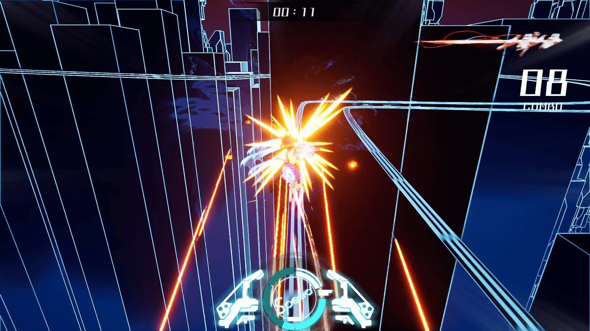 Simple yet authentic 3-button action. Take control of the humanoid antivirus 'TRIUM', in this on-rails virus-killing action game. Eliminate viruses, speed up, and catch up to the 'Intruder' virus that started this mess!