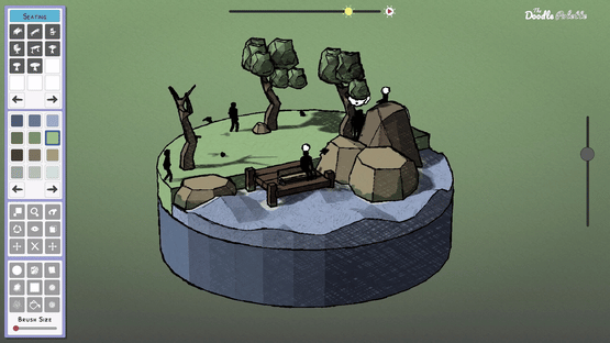 A cozy sandbox for building and painting miniature worlds. Place, paint, and decorate while tiny people and birds bring your dioramas to life.