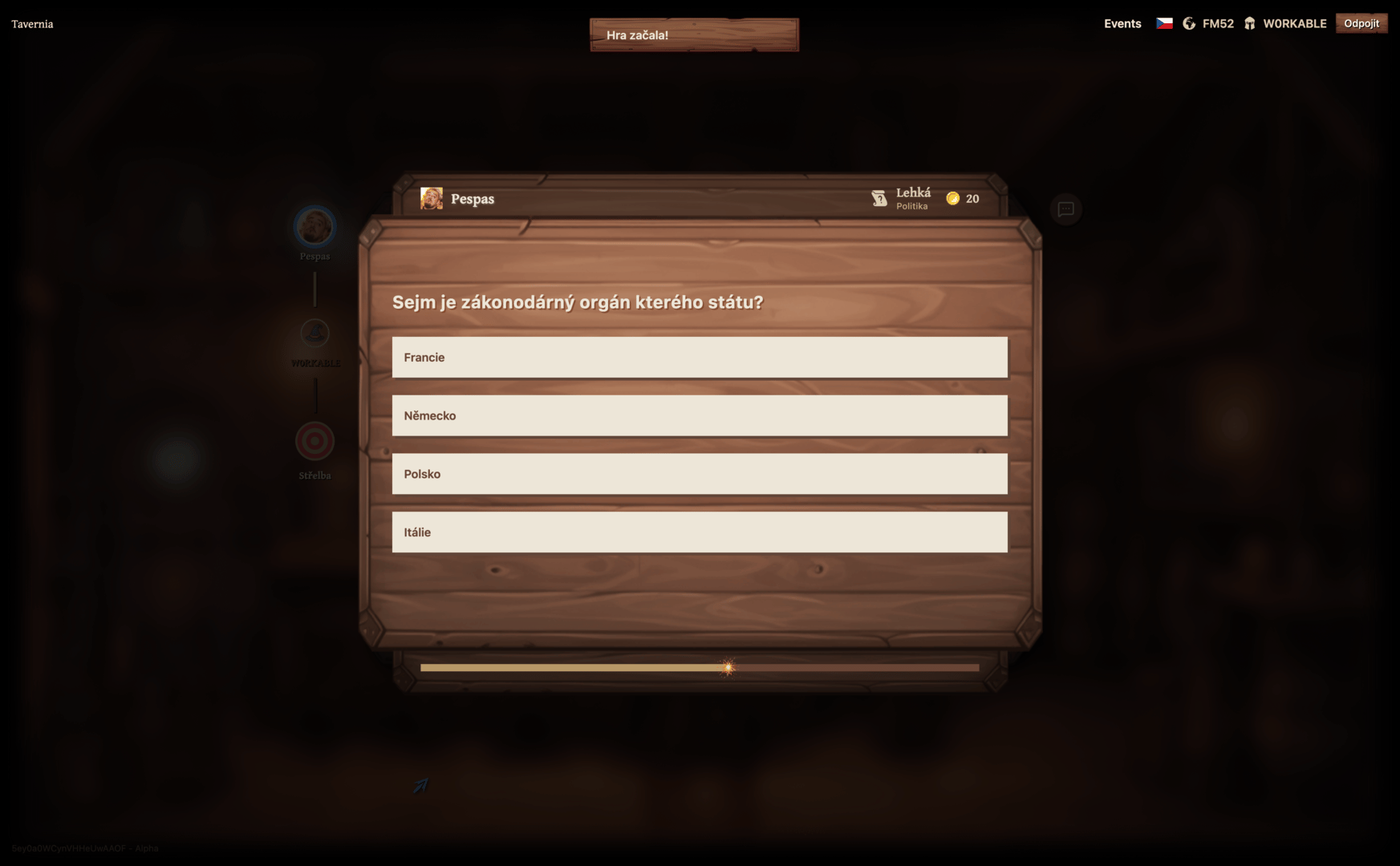 Tavernia is a multiplayer strategy trivia game set in a medieval tavern. Players fight for territory by answering questions and playing minigames.
