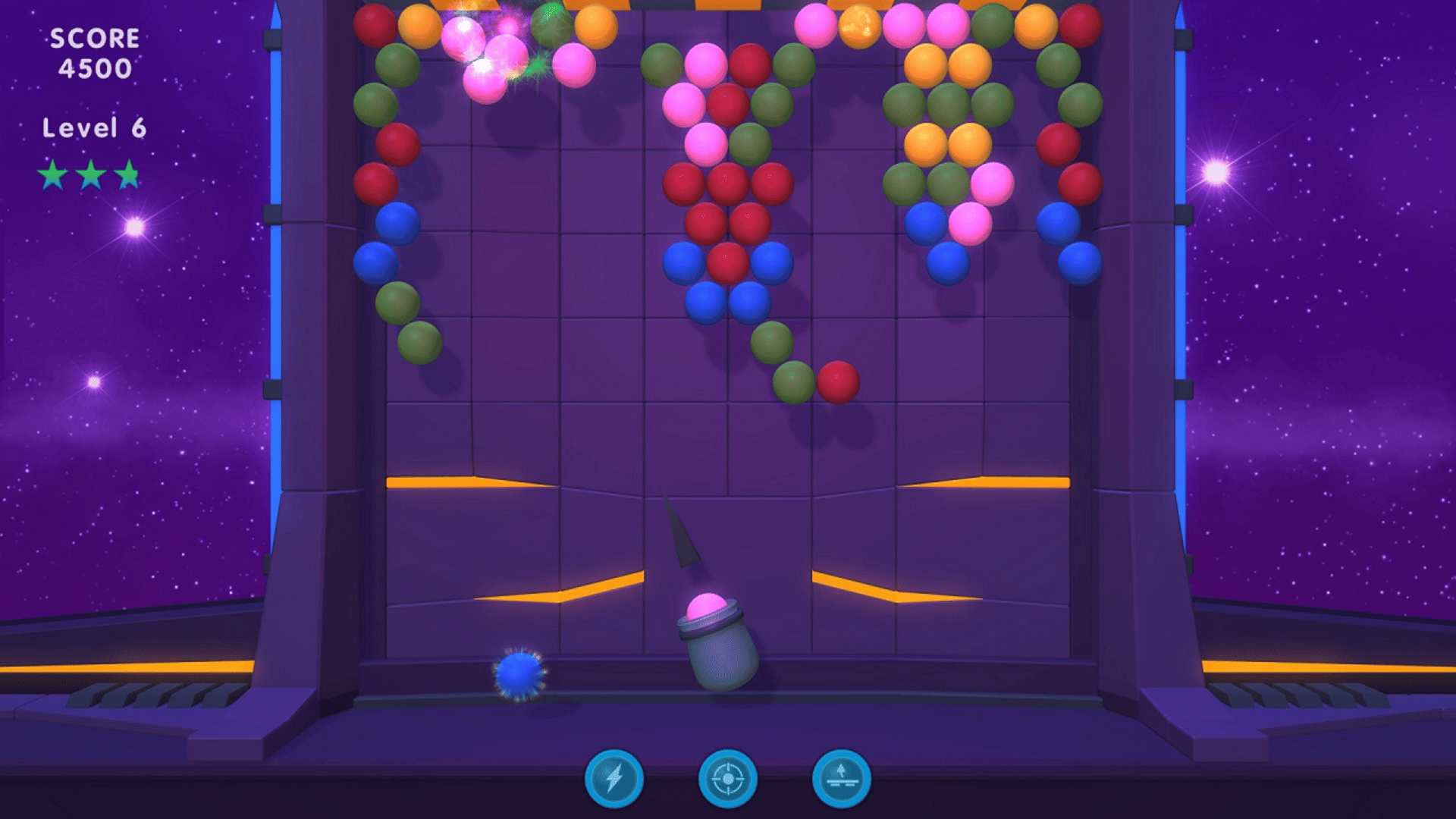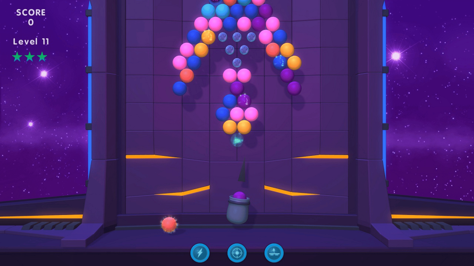 Space Bubble Shooter is a classic bubble shoot game. This addictive classic bubble blast match-three game comes with clean and modern graphics, hundreds of great challenging levels and some nice special items for better game experience in harder levels.