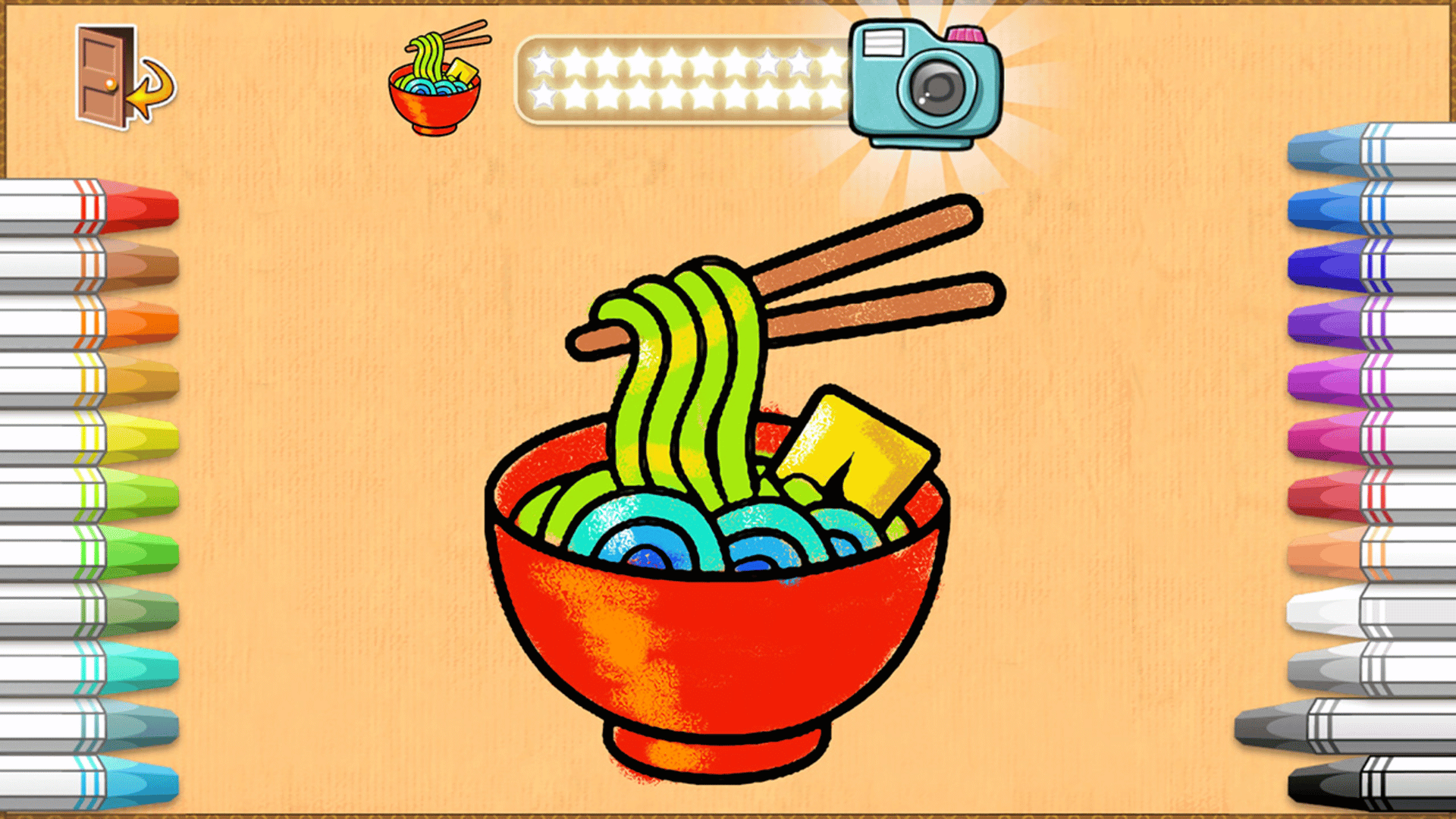 Colour delicious foods with your crayons! Create sweet desserts and dishes by hand. Make your own food art with rich, real crayon textures!