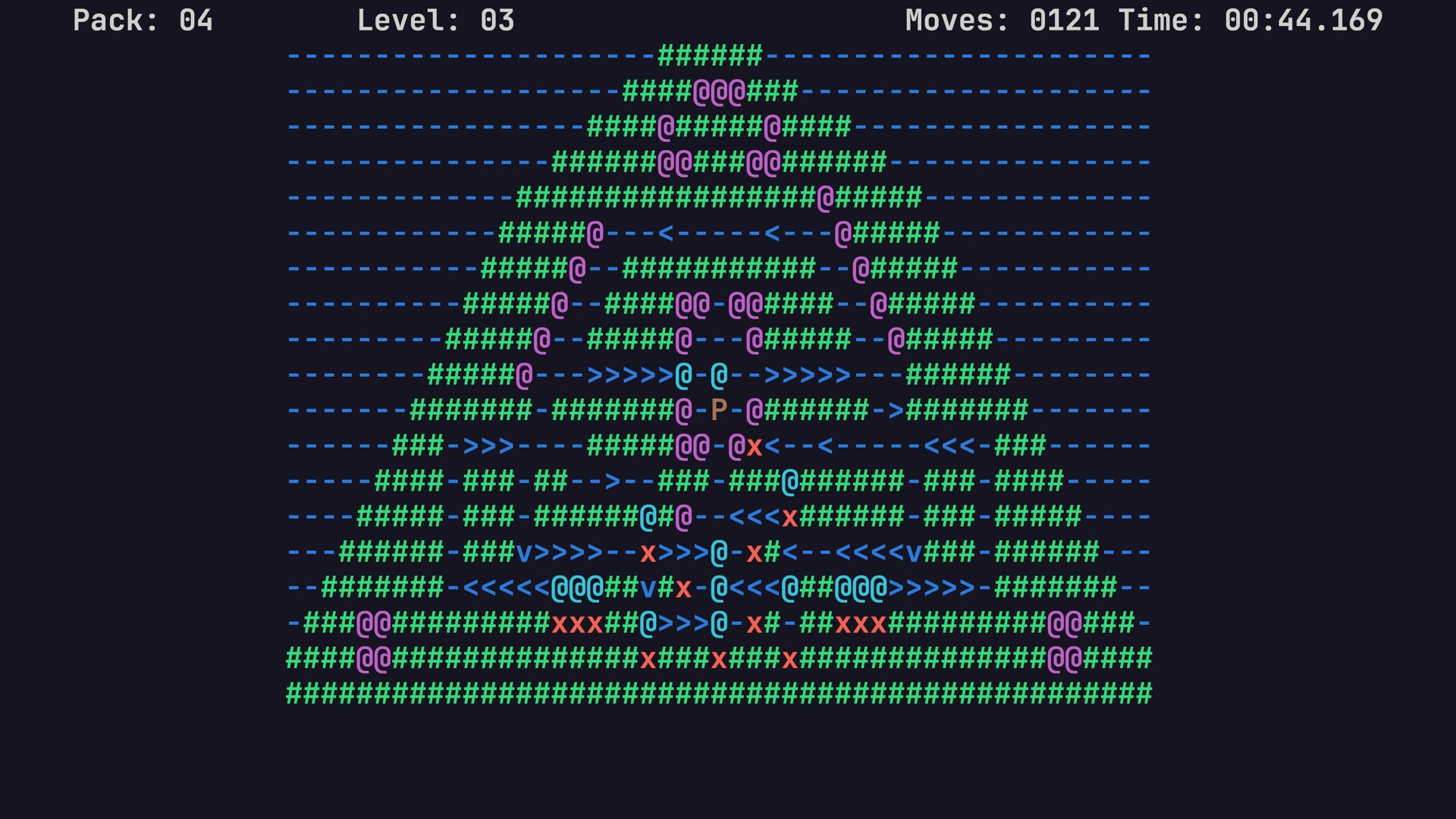 An ASCII-based Sokoban game with unique gameplay mechanics. Test your puzzle solving skills on more than 200 completely new levels.
