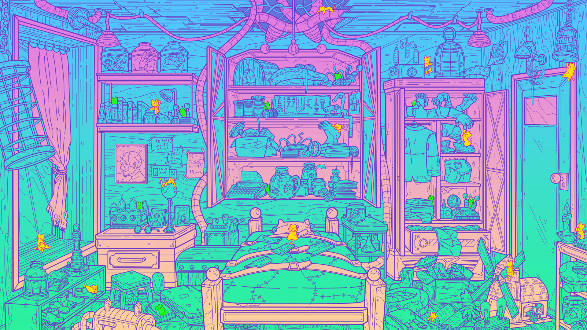 Step into a spooky yet charming world of classic creatures! Find every hidden cat in the lairs of Frank, the Mummy, and the Swamp Monster. A playful mix of eerie and cute — perfect for those who love a little Halloween spirit all year round.